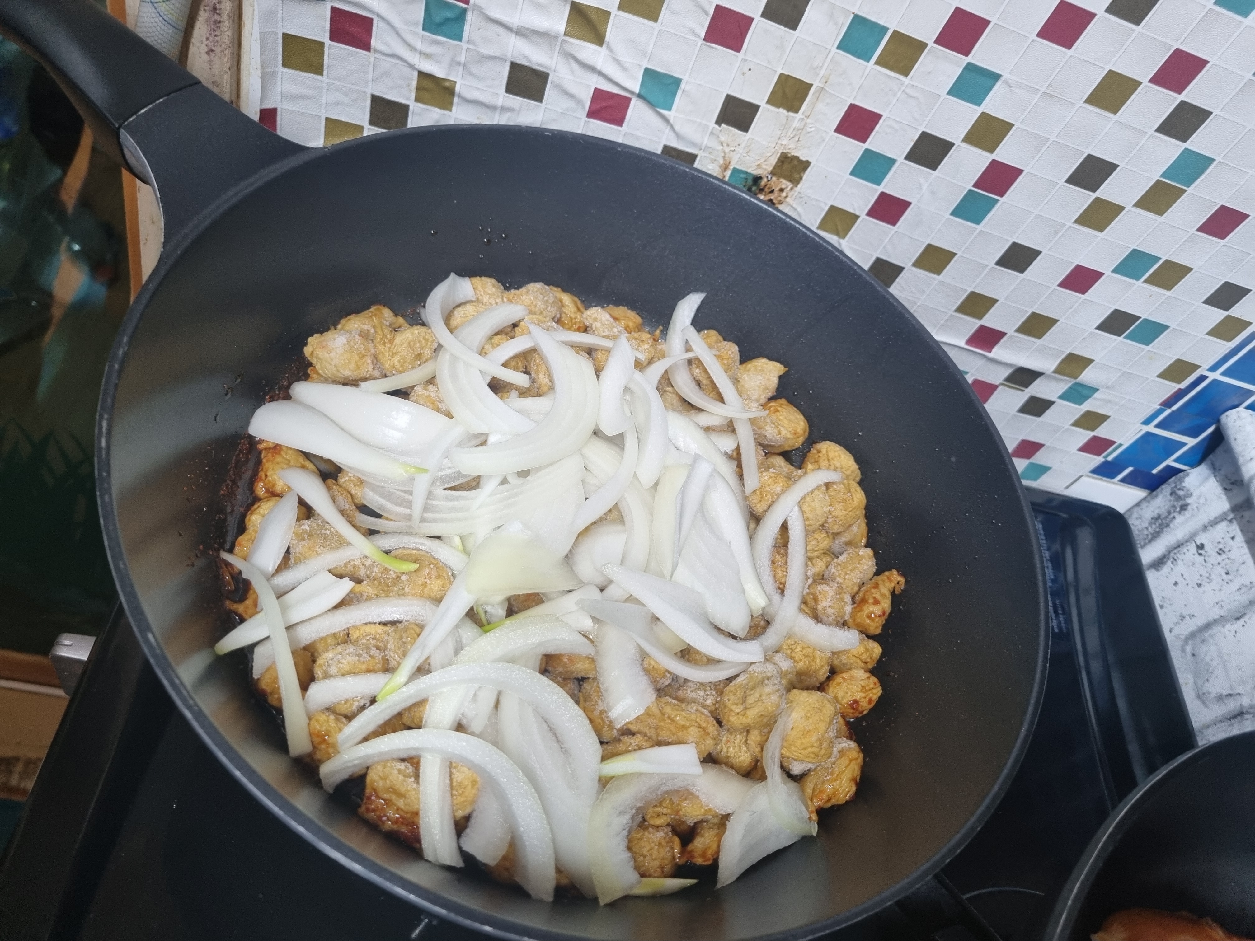 이어서 어묵을 넣어 양파를 적당한 크기로 잘라 미리 준비하여 어묵을 넣을때 함께 넣어줍니다.