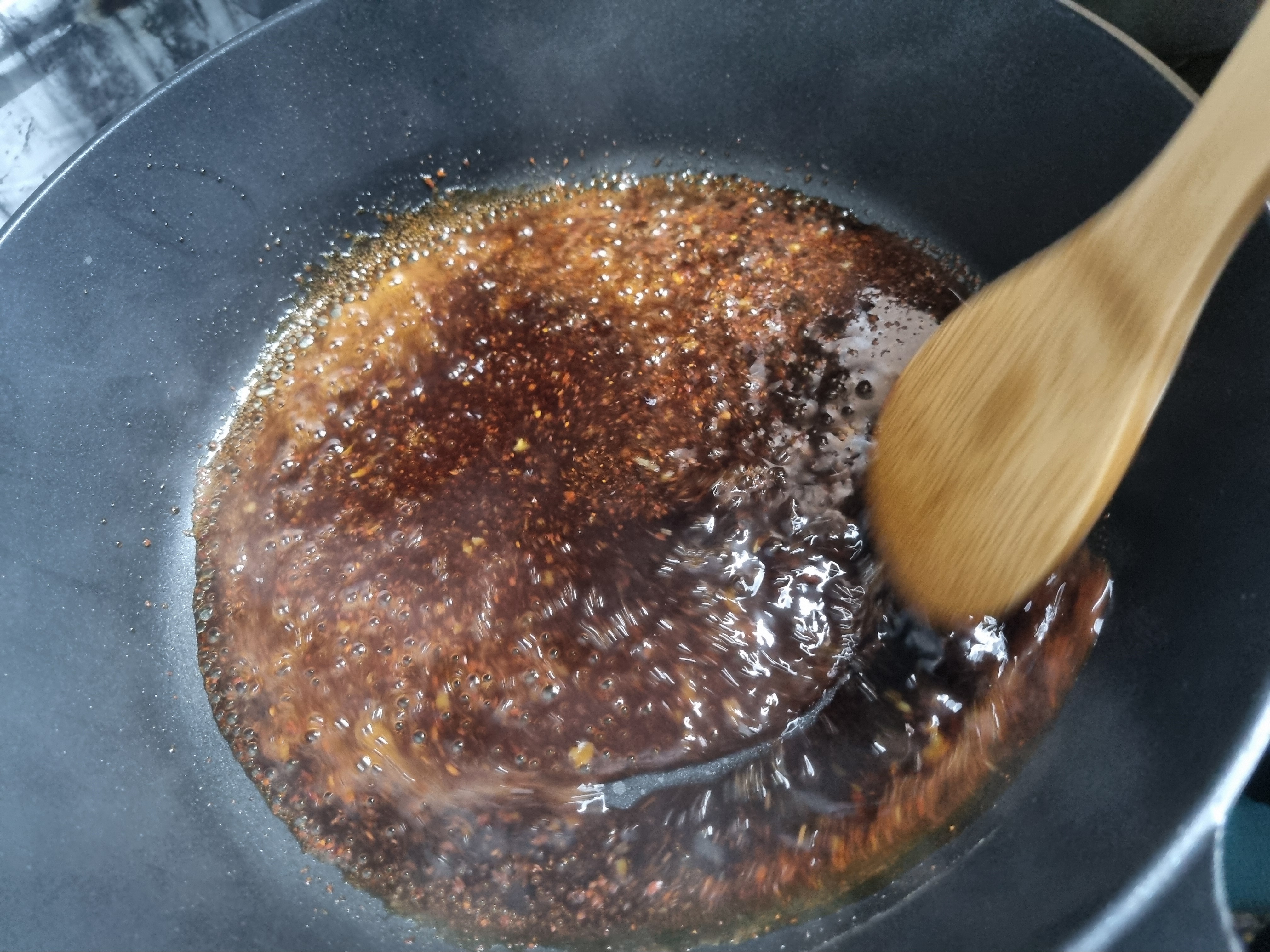 먼저 양념장을 만드는데 간장과 고춧가루 물엿 다진 마늘을 차례로 넣으면서 천천히 끓이는데 끓이기 시작하면 물을 한 컵 넣어줍니다.