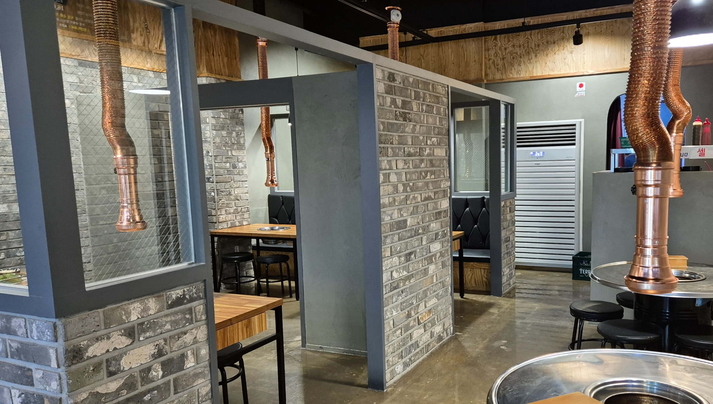한쪽 벽면에 룸이 있는데 완전히 가려진 것은 아니며 반룸 형태로 되어 있어 자리가 비워있거나 미리예약하시면 가능합니다.