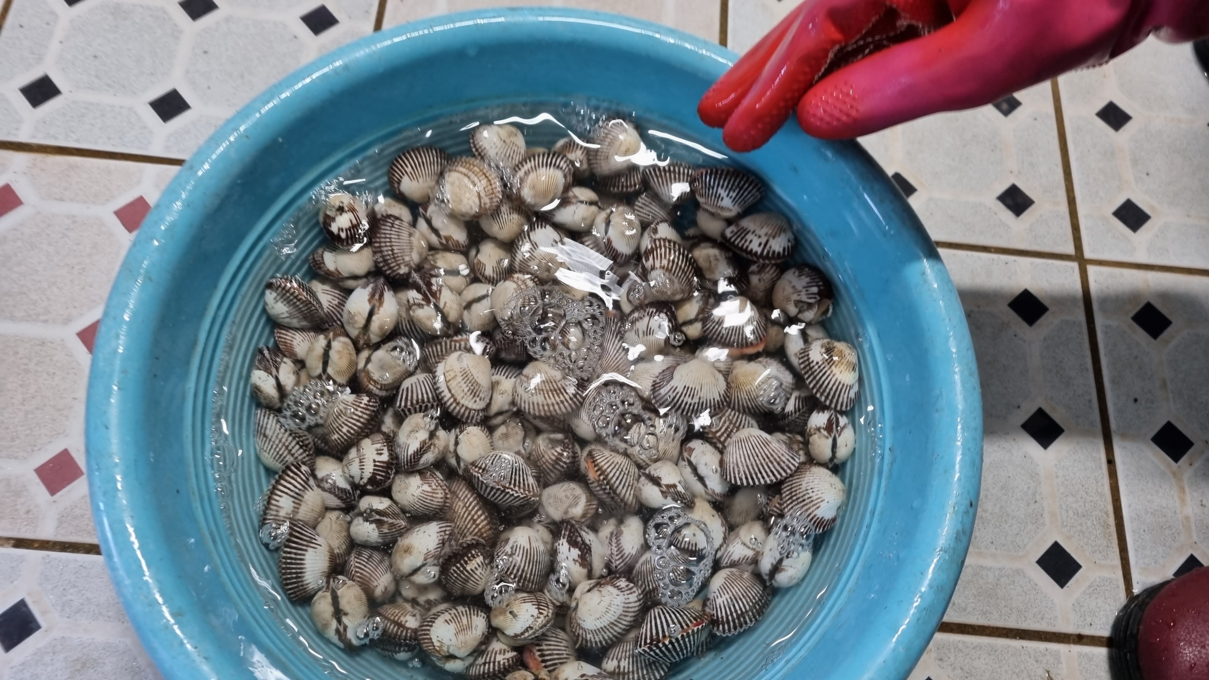 1kg 기준으로 소금을 밥숟가락으로 가득 하나정도 하면 되고 물을 꼬막이 모두 물에 잠기는 정도 하면 충분합니다.