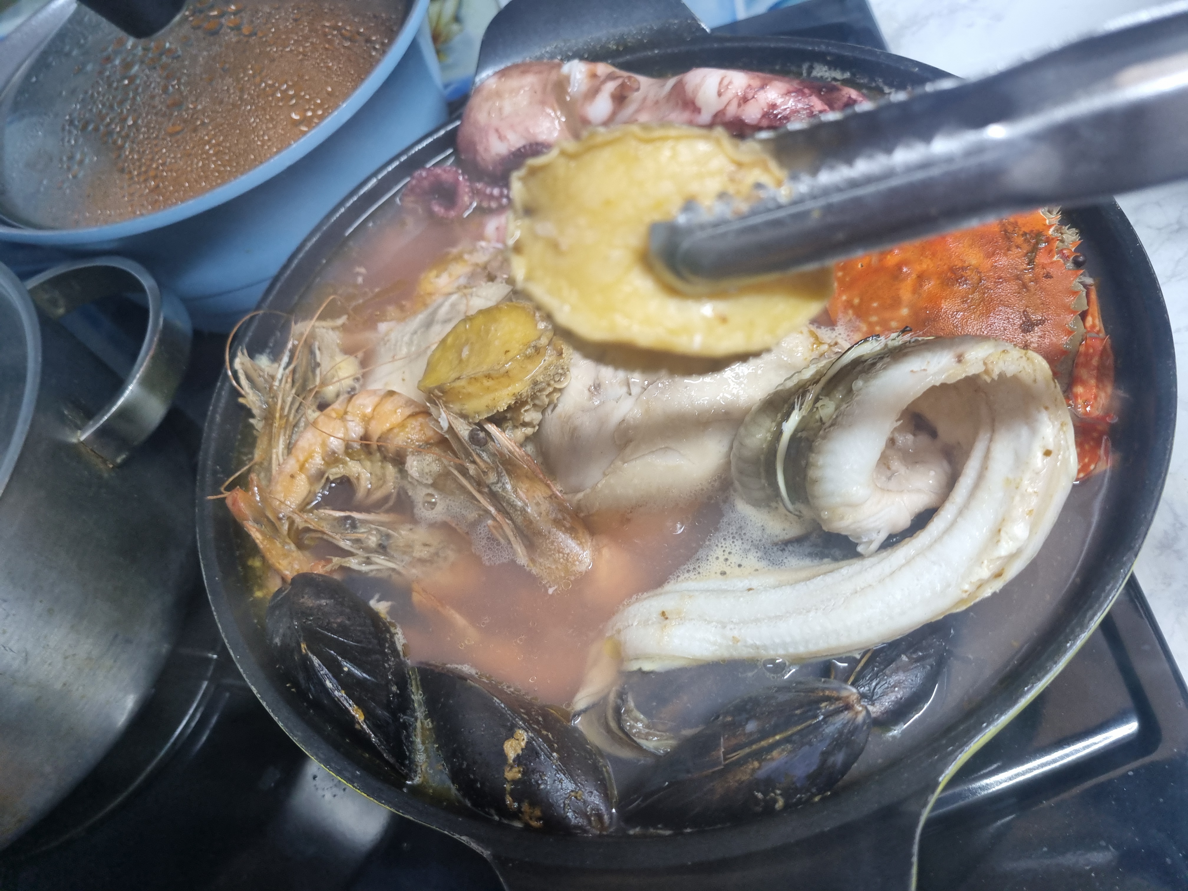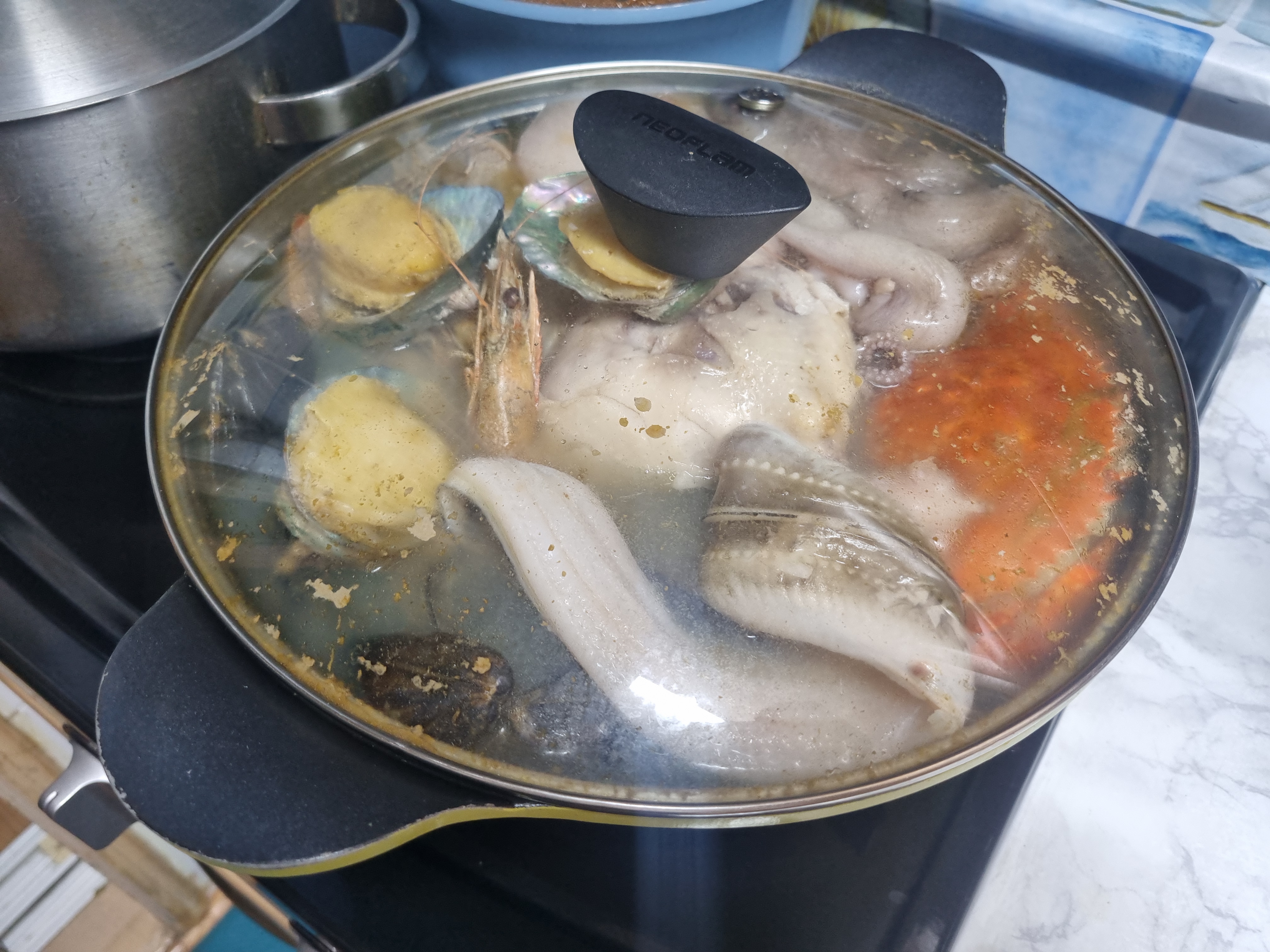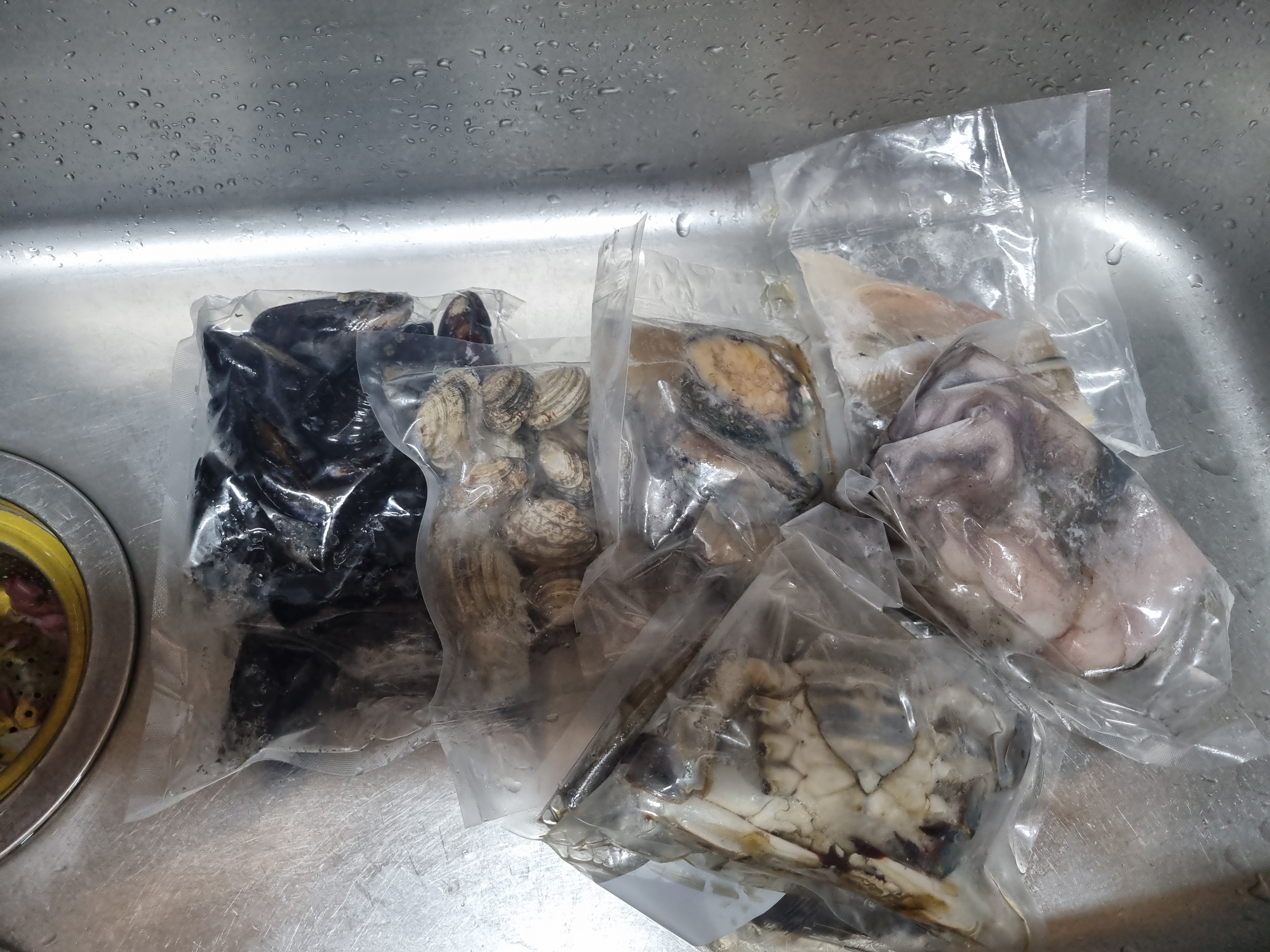 - 해산물(홍합,바지락,꽃게,문어,장어,전복,새우)을 준비했는데 처음 소개한 데로 일일이 하나하나 준비한 게 아니라 세트로 판매된 것을 구입한 것입니다.