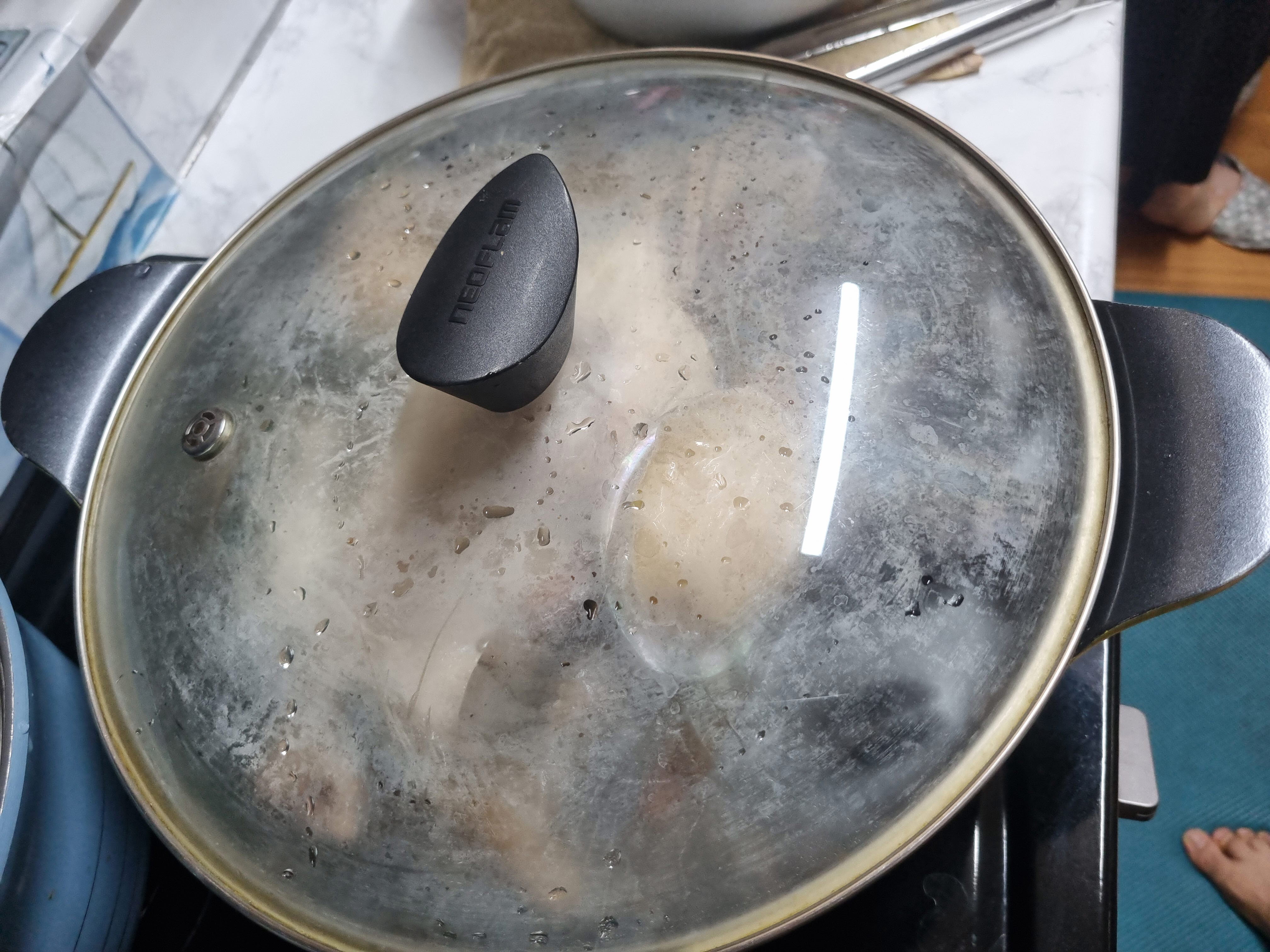 먼저 냄비에 생닭을 넣고 물을 닭 높이정도 넣어 끓이기 시작합니다.