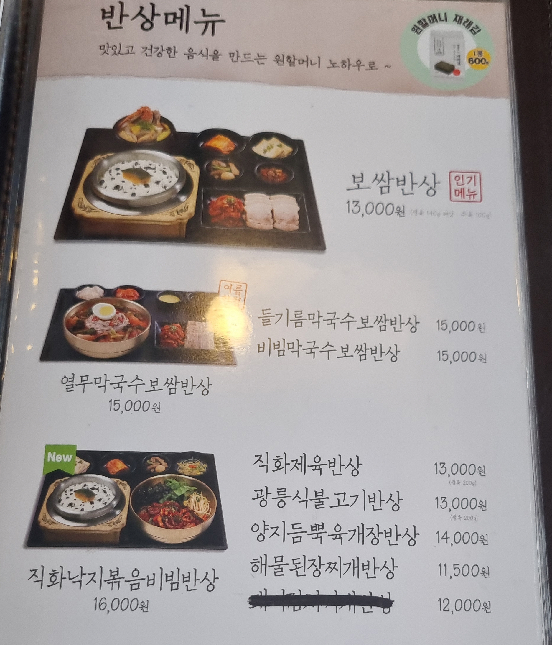 시원하게 드시고 싶으시면 국수종류의 반상을 그냥 밥과 보쌈을 드시고 싶으시면 보쌈반상을 드시면 너무 좋습니다