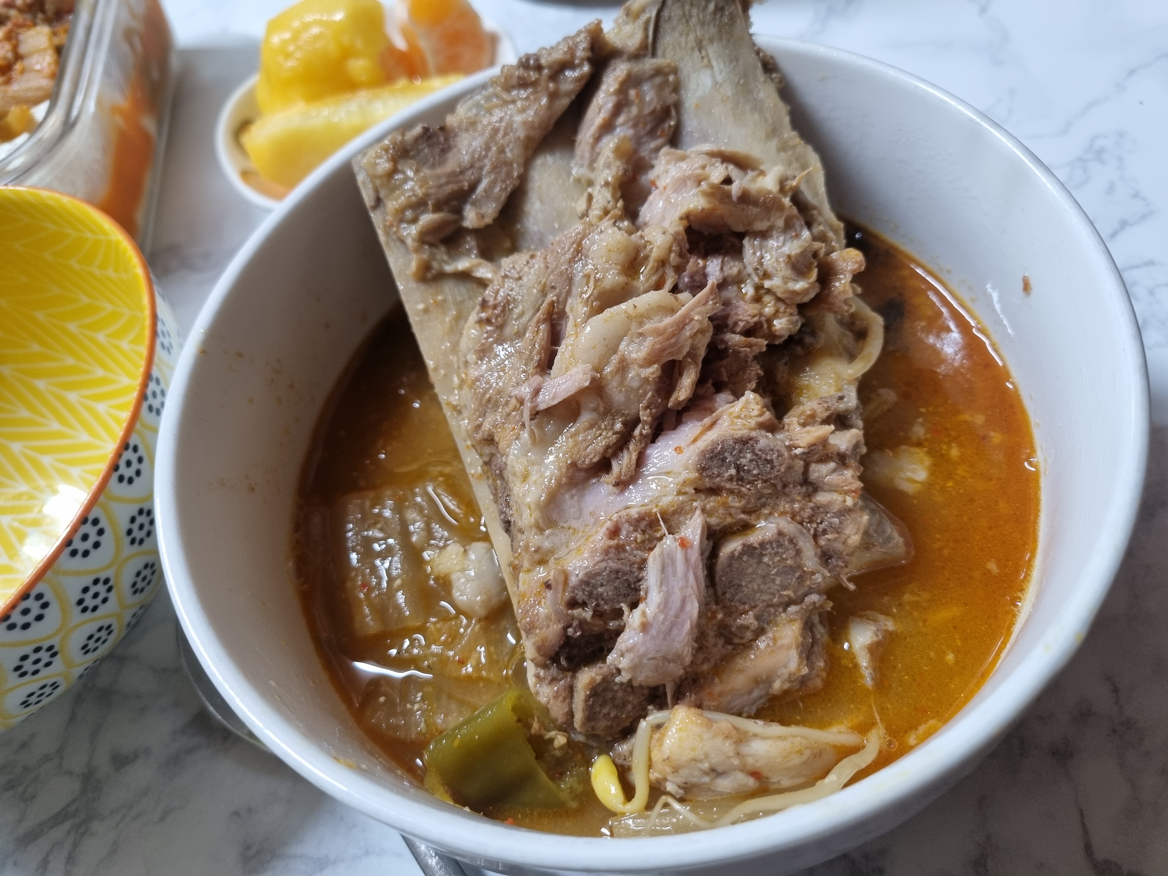특별한 재료를 넣지 않고 묵은지 김치만 넣었는데 이렇게 맛있습니다. 국물도 맛있고 돼지 등뼈 살코기 발라먹는 재미도 너무 좋습니다.