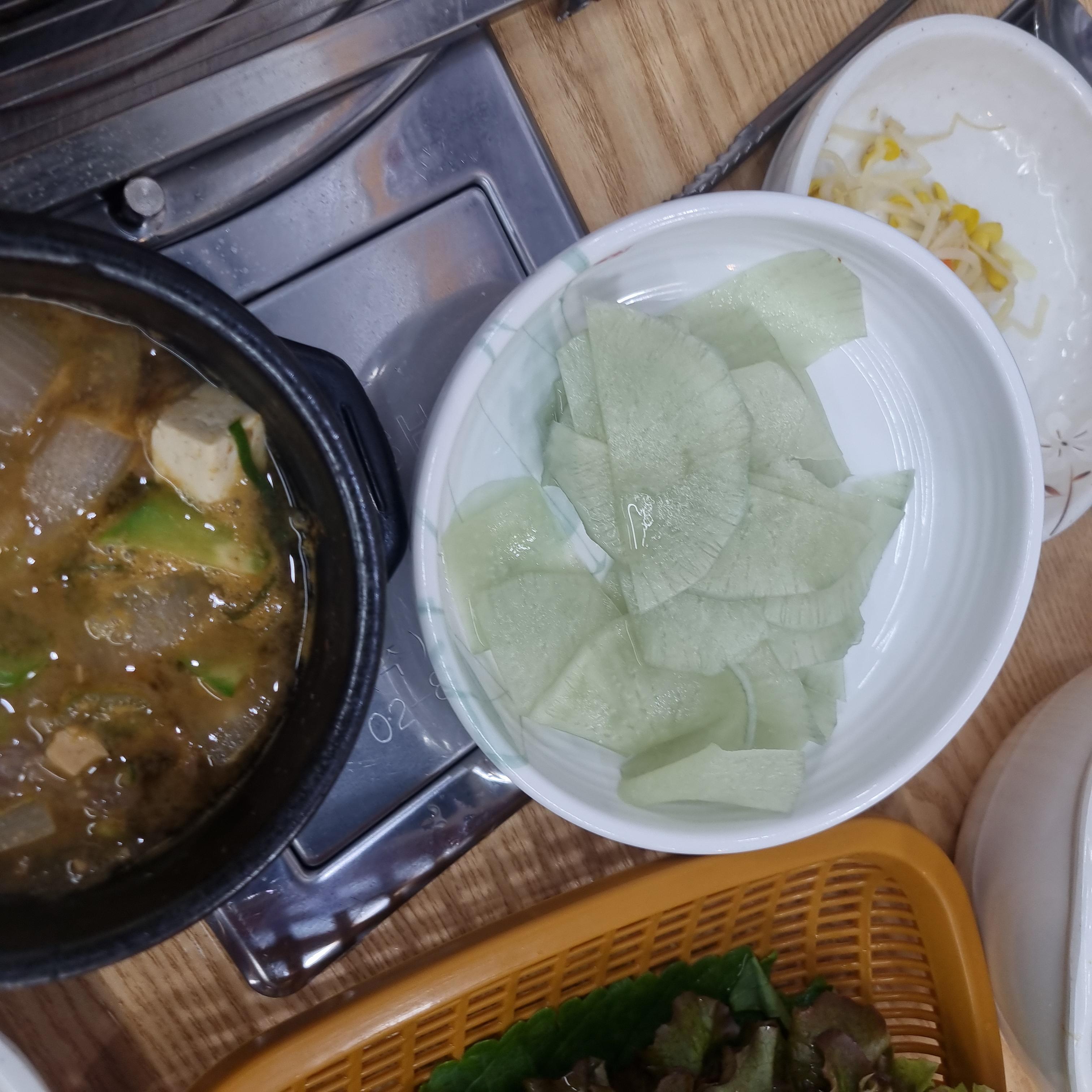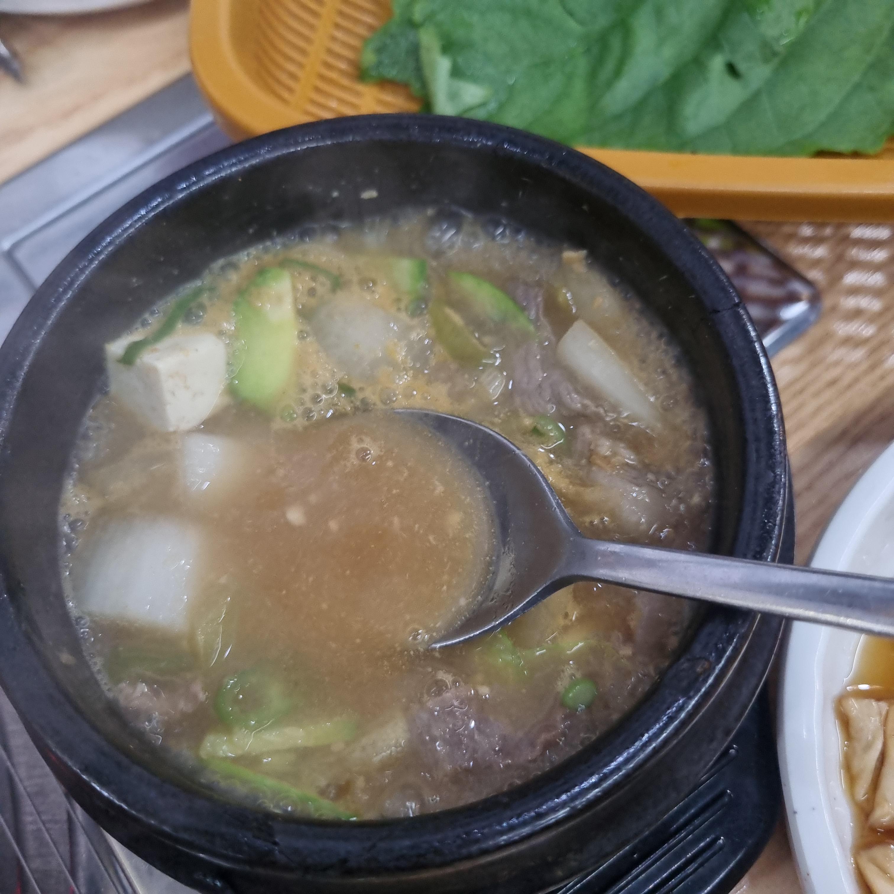 고기를 굽는 동안 반찬을 집어먹었고 또한 뚝배기에 된장국이 나오는데 정말 시원하고 맛있었습니다.