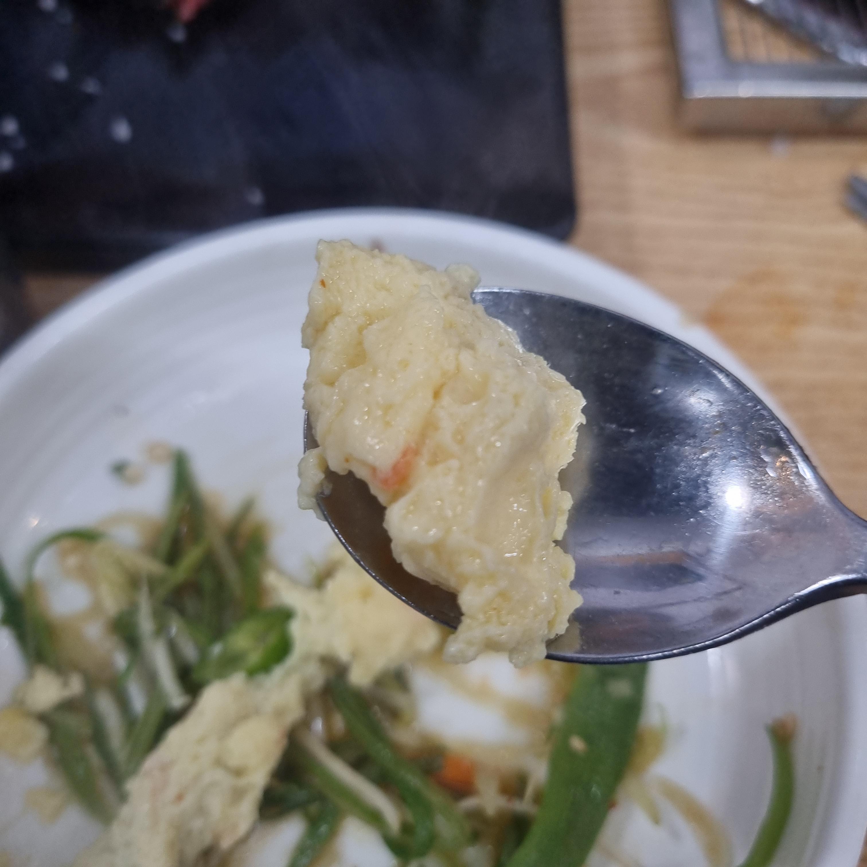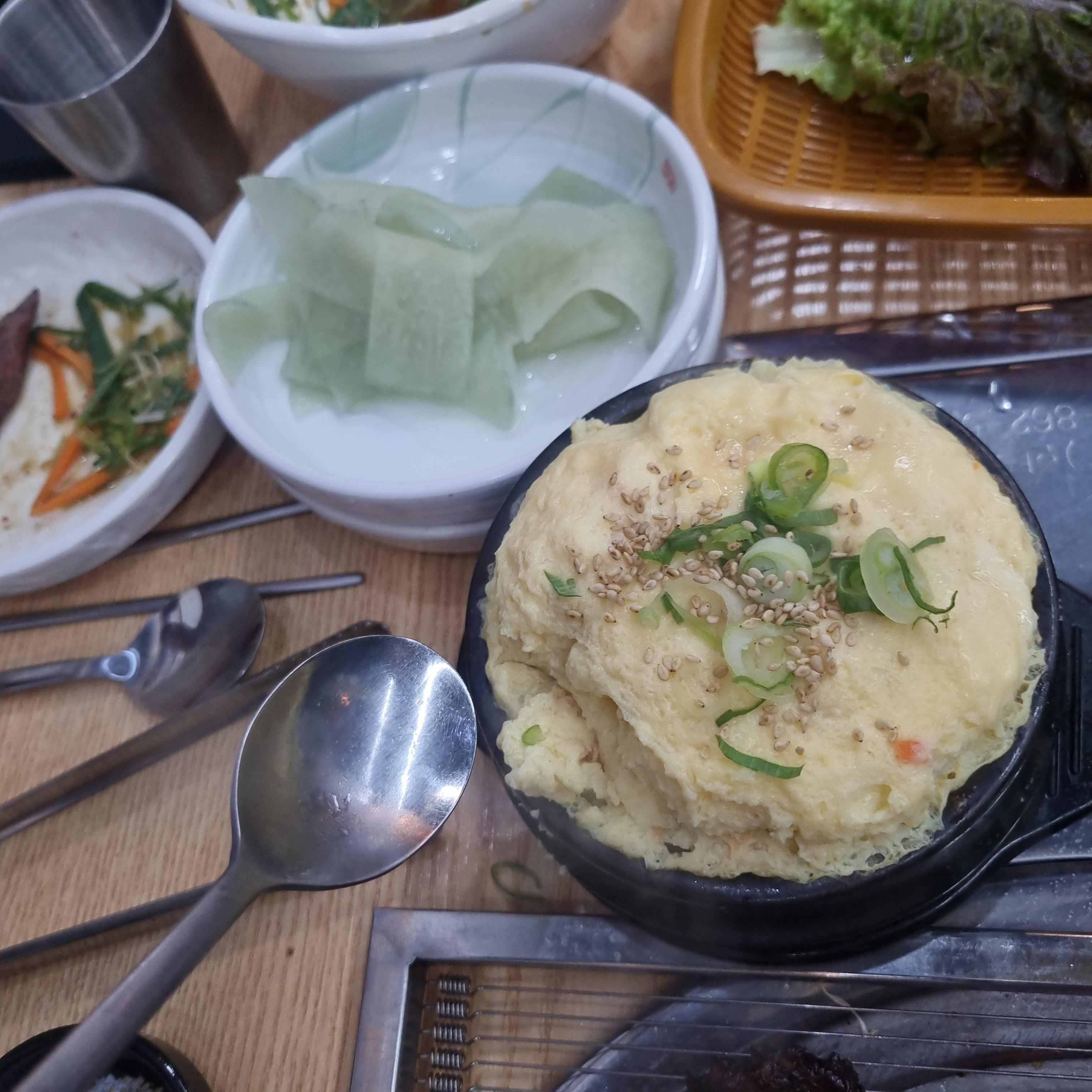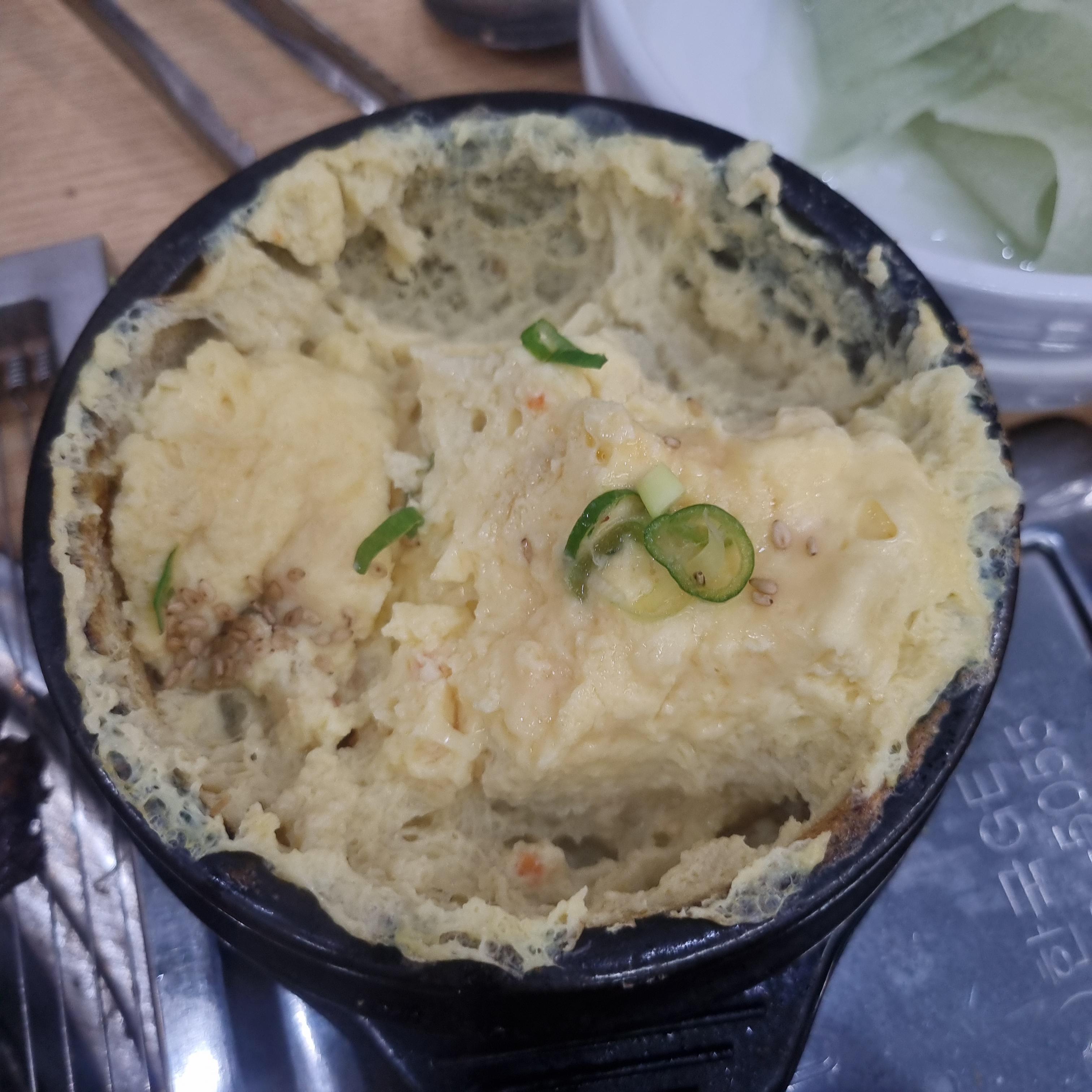 이것은 계란찜인데 서비스 음식은 아니고 3천원에 주문할 수 있는데 양이 정말 많고 맛있습니다.