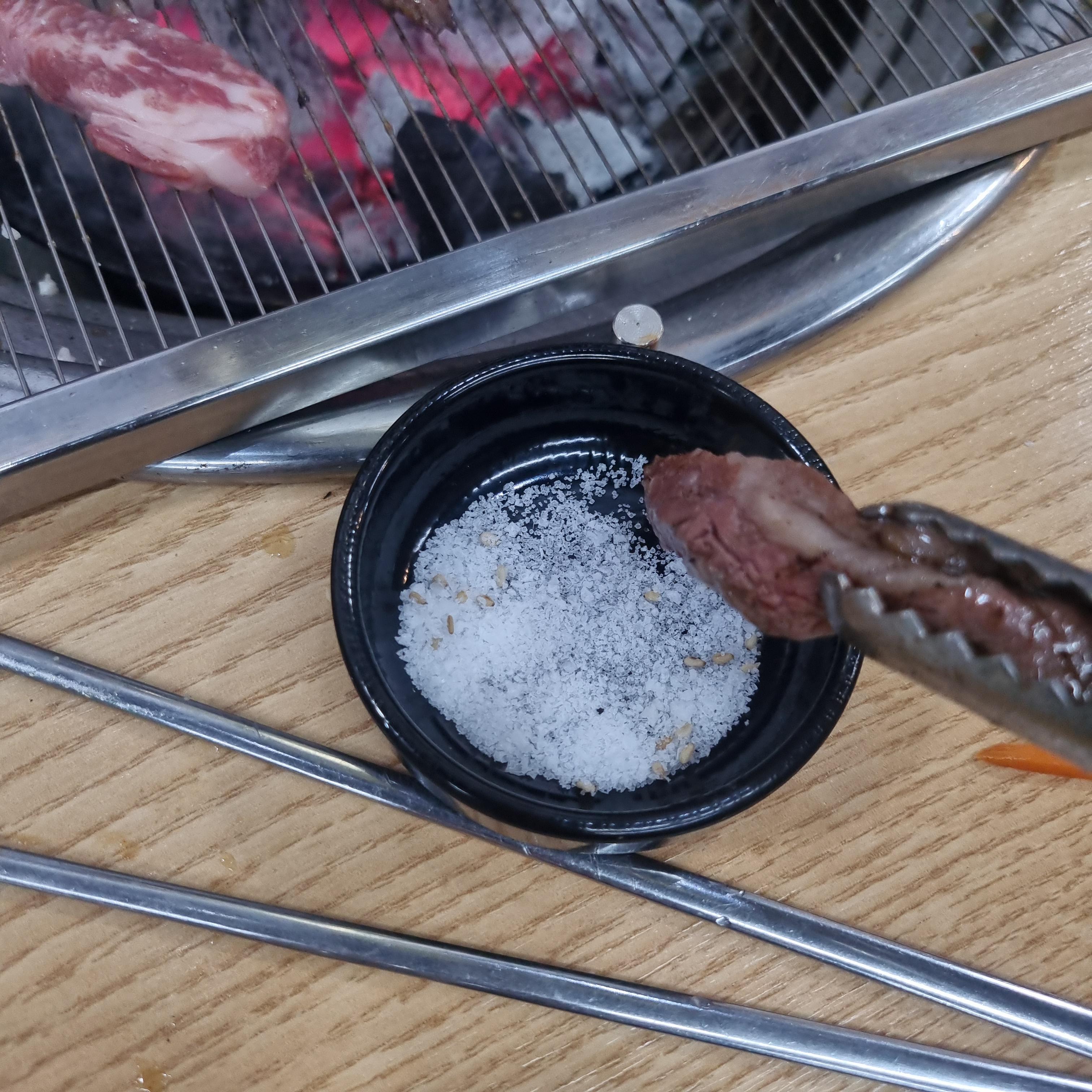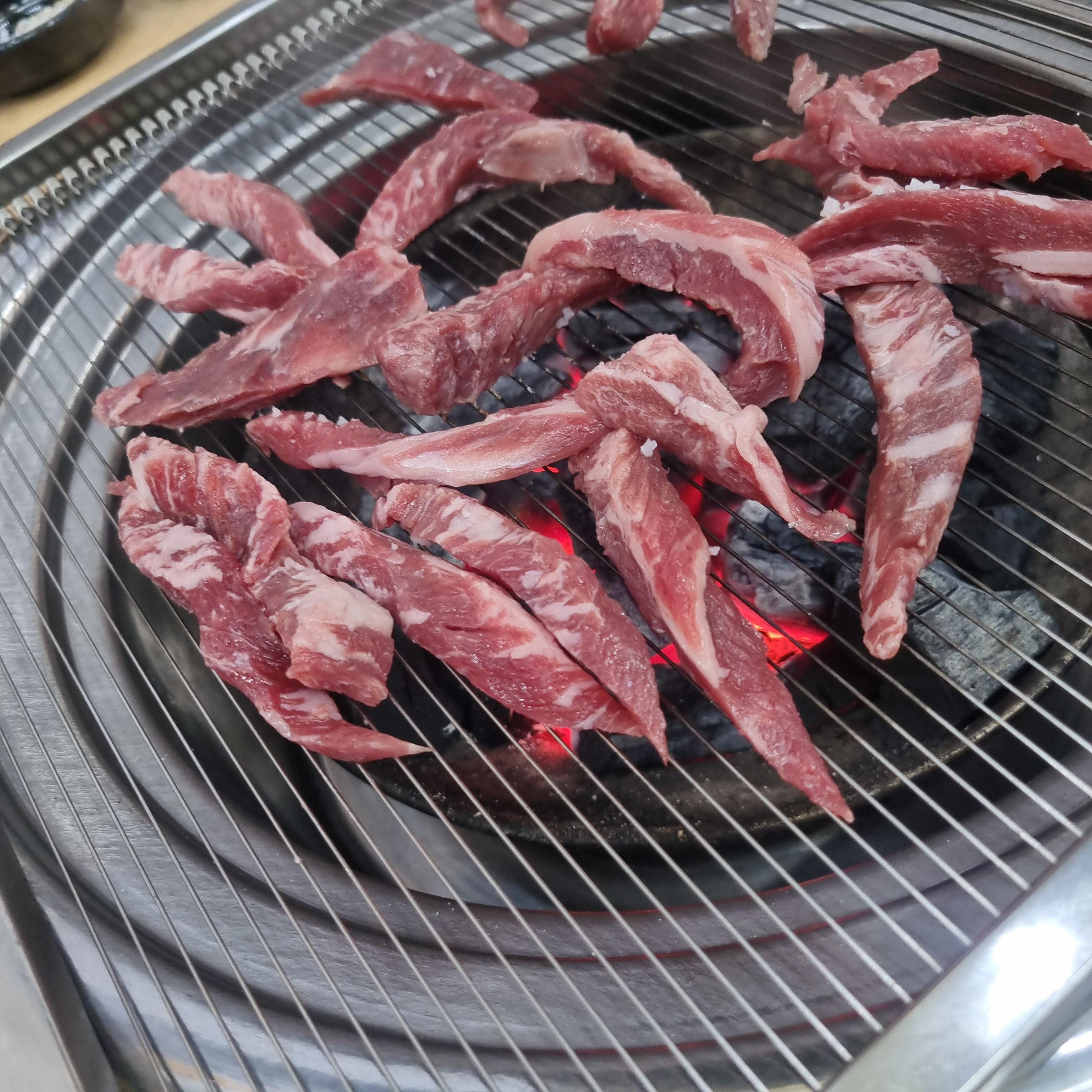 수입산 소고기이지만 싱싱하게 보이고 숯불에 구워 아주 맛있을 것 같습니다.
