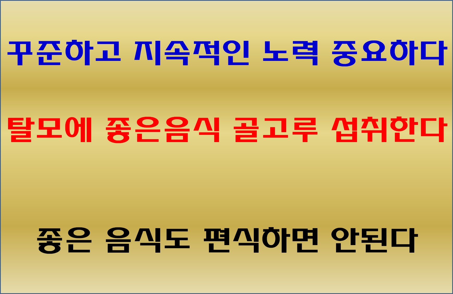 좋은 음식들은 말그대로 도움을 주는 식품들이지 빠르게 효과를 보는 약이 아닙니다. 본인이 유전적으로 탈모가 걱정되거나 스트레스성으로 미세하게나마 탈모가 진행된다면 약이나 영양제도 함께 하면서 평소 식습관을 탈모에 좋은 음식을 조금더 먹는 것이 좋은 효과를 보기위한 지속적인 걸음마라고 생각합니다.