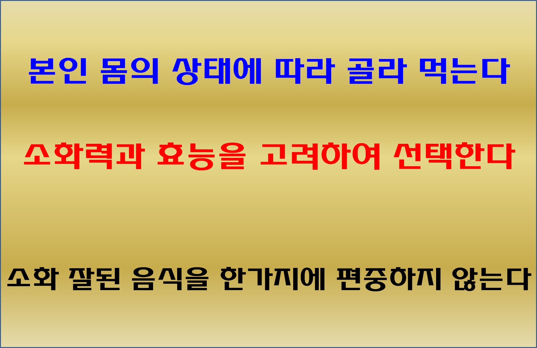 * 몇 가지 소화 잘 되는 음식을 소개했는데 본인의 몸상태나 조건에 따라 조절하여 드시고 아무리 좋은 식품도 한두 가지에 의지 하시면 좋지 않고 여러 가지를 드시는 것이 좋습니다.