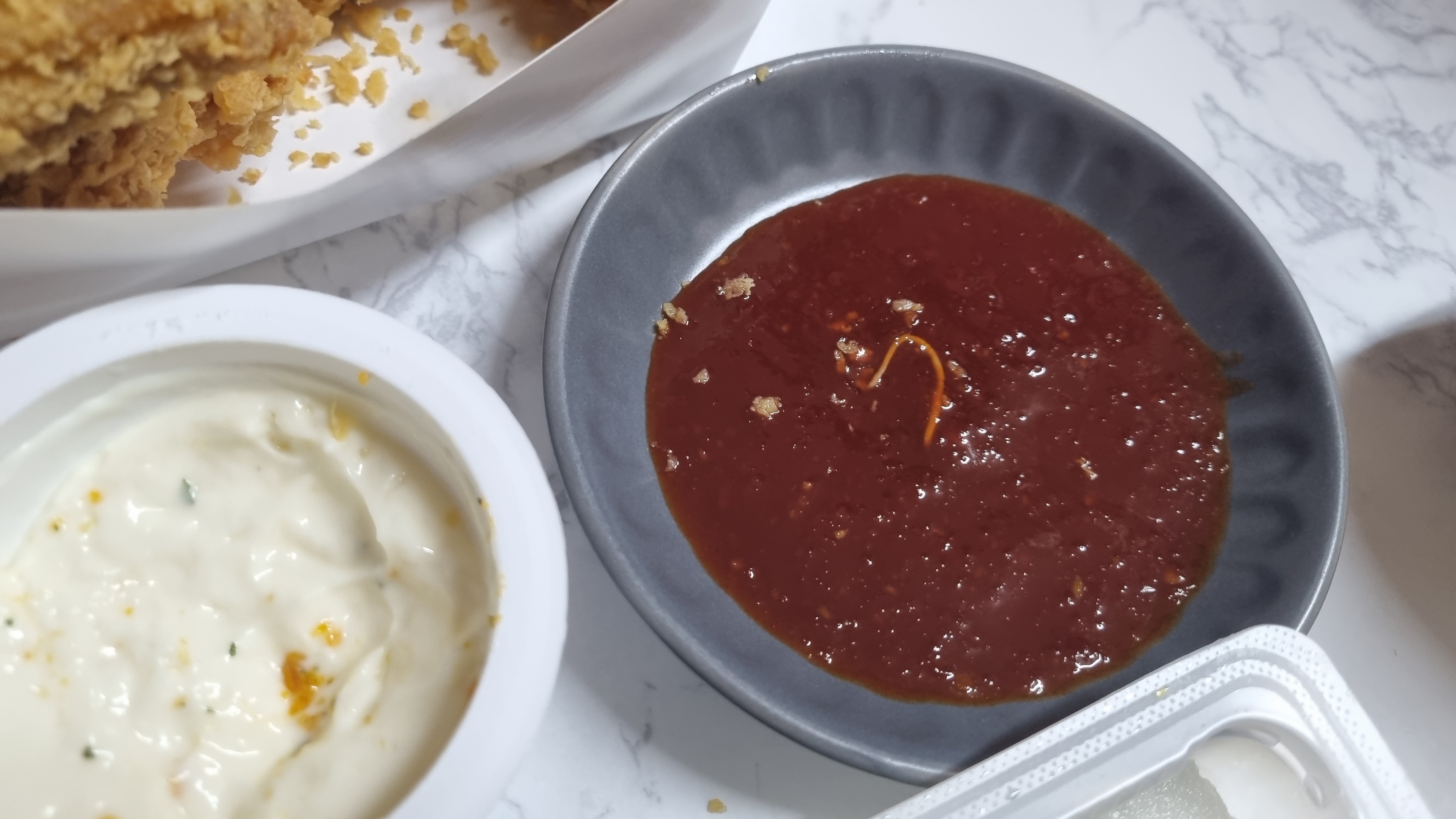 메뉴의 종류에 상관없이 소스 2가지 정도는 항상 주는것 같습니다. 이것도 남겨 놓아 나중에 다른 치킨것 먹을때 이용하기도 합니다.