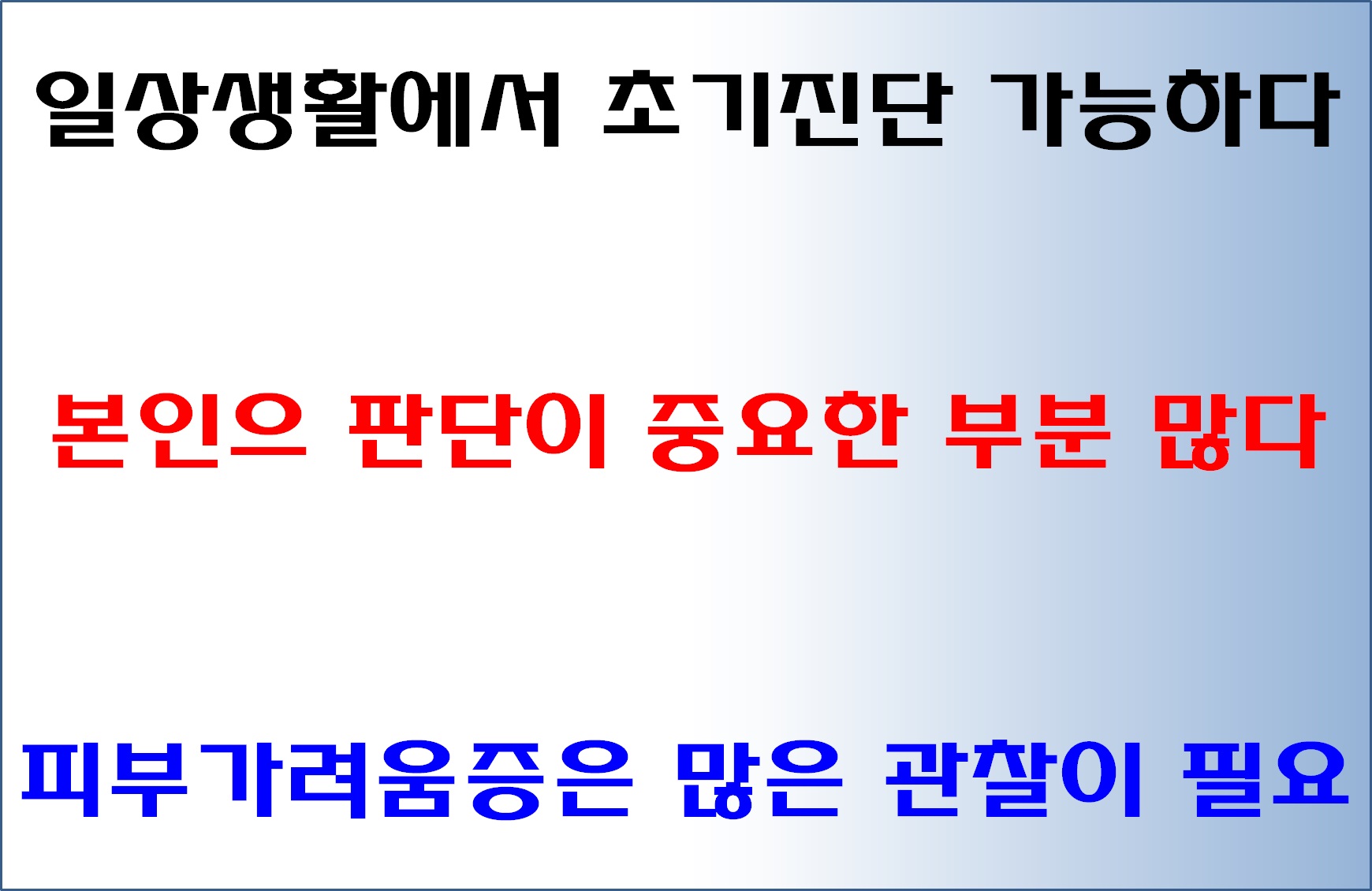 이러한 것들은 의사보다는 본인이 관심을 가지고 잘 살펴야 진단하는데 도움이 될 수 있습니다.