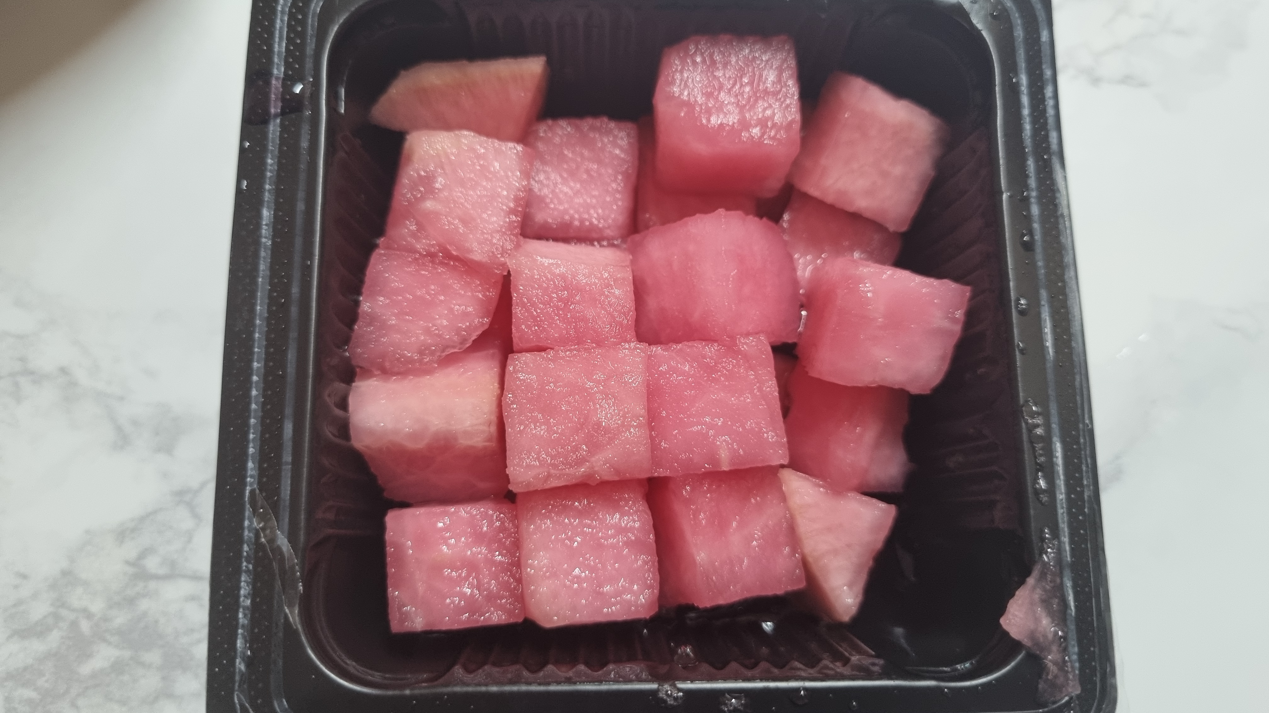 무입니다. 치킨무와 다르게 색깔이 붉은색인데 맛은 서로 비슷합니다.