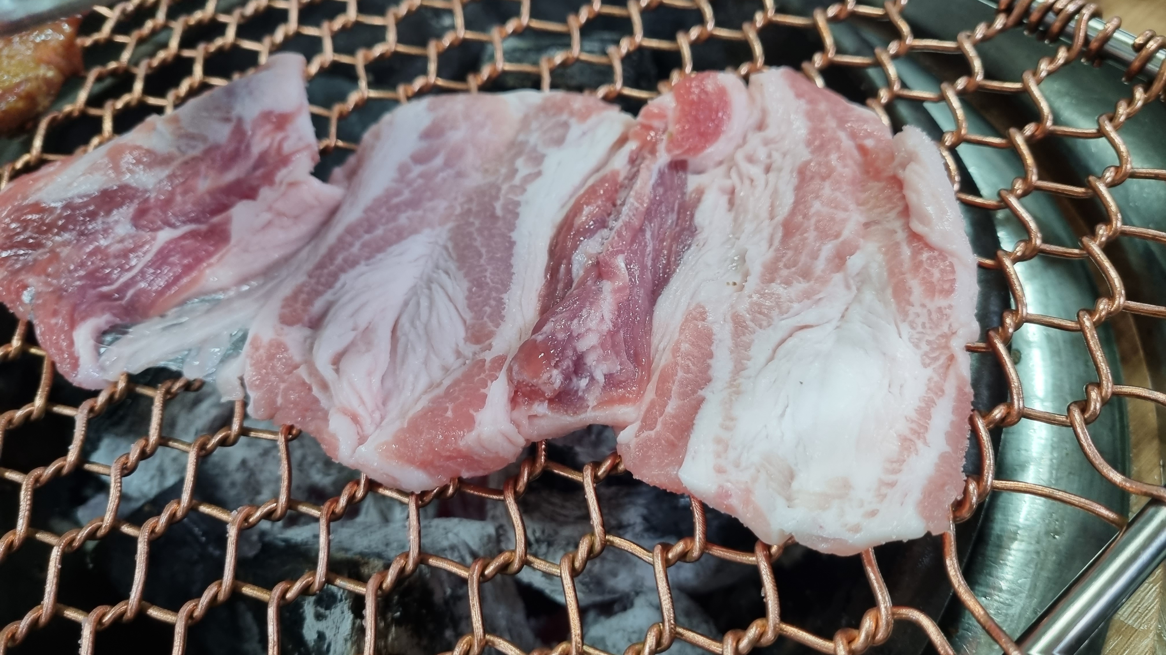 이어 주문한 것이 삼겹살입니다. 숯불에 삼겹살 구우면 불이 잘 나서 목살로 할까 고민하다고 그래도 삼겹살 맛을 잊을 수 없어 결국 이것으로 주문했습니다.