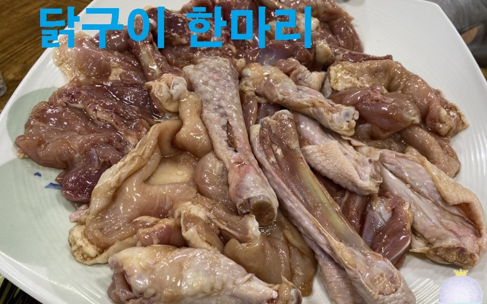 먼저 나온 것이 닭구이인데 저렴한 가격에 비교 닭이 큰 편에 속합니다. 손질이 잘되어 간단한 양념이 되어 있는데 굽기 편리하게 되어있습니다.