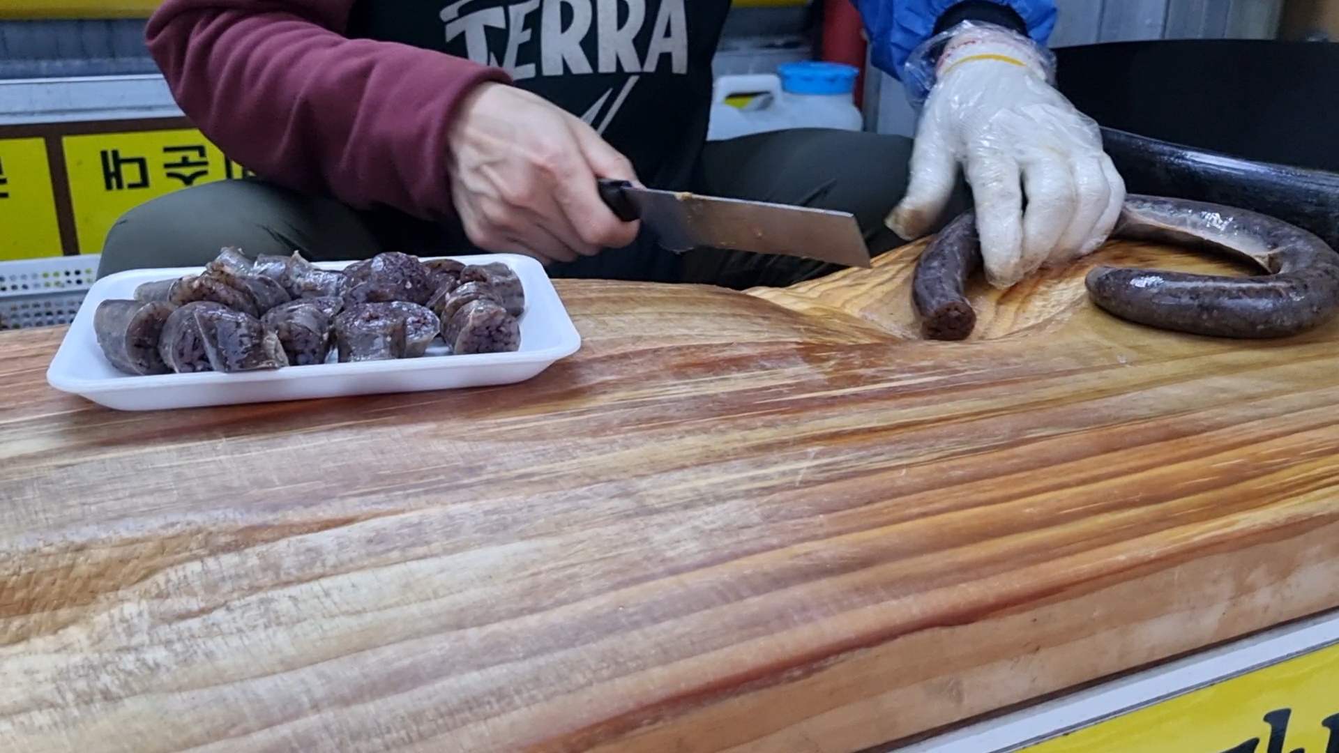판매하신 분의 노력한 순대 썰기를 구경해도 재밌습니다. 오늘은 찰순대를 6천 원에 구입하여 저녁에 집에서 막걸리와 함께 먹으려 합니다.