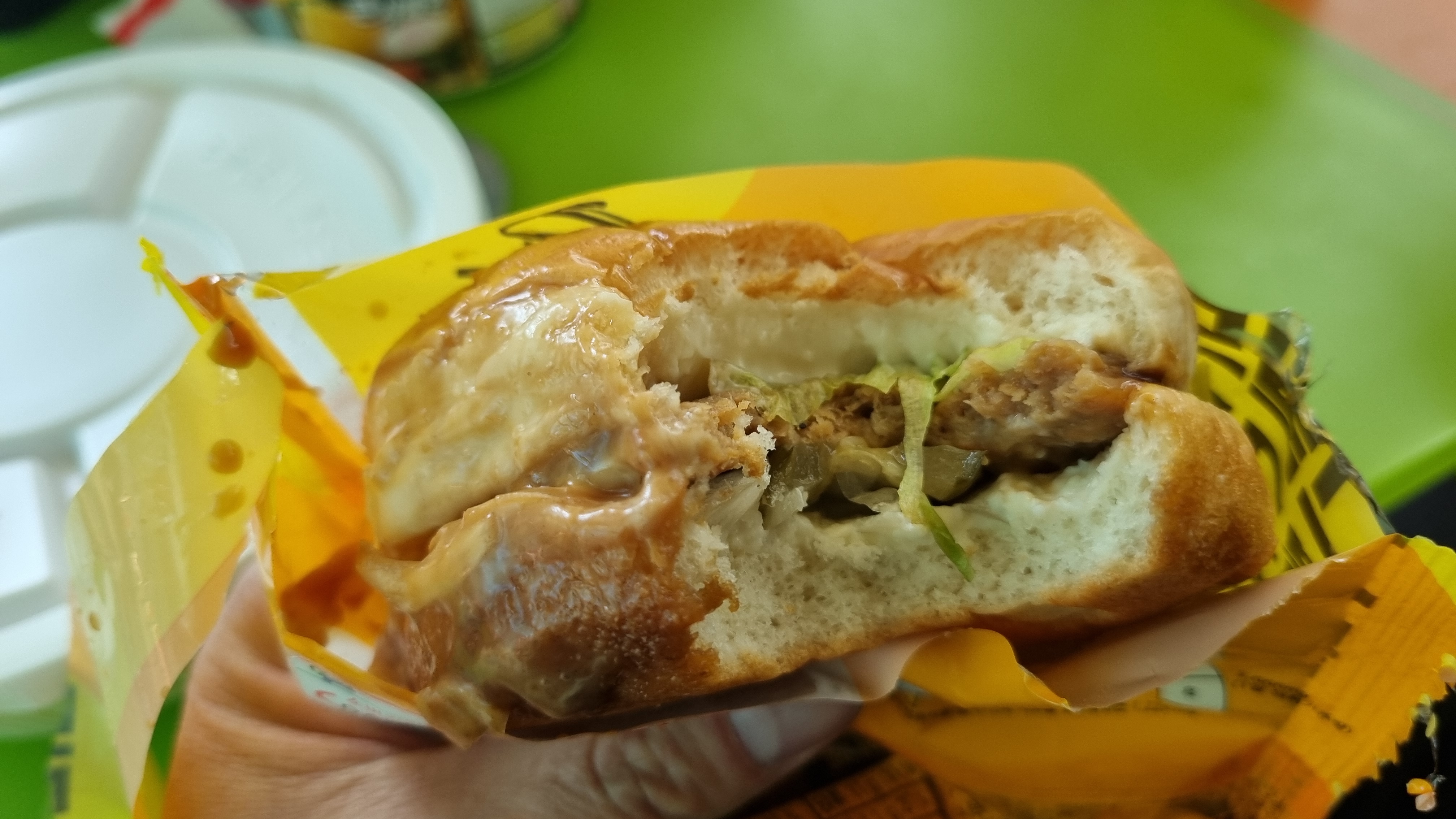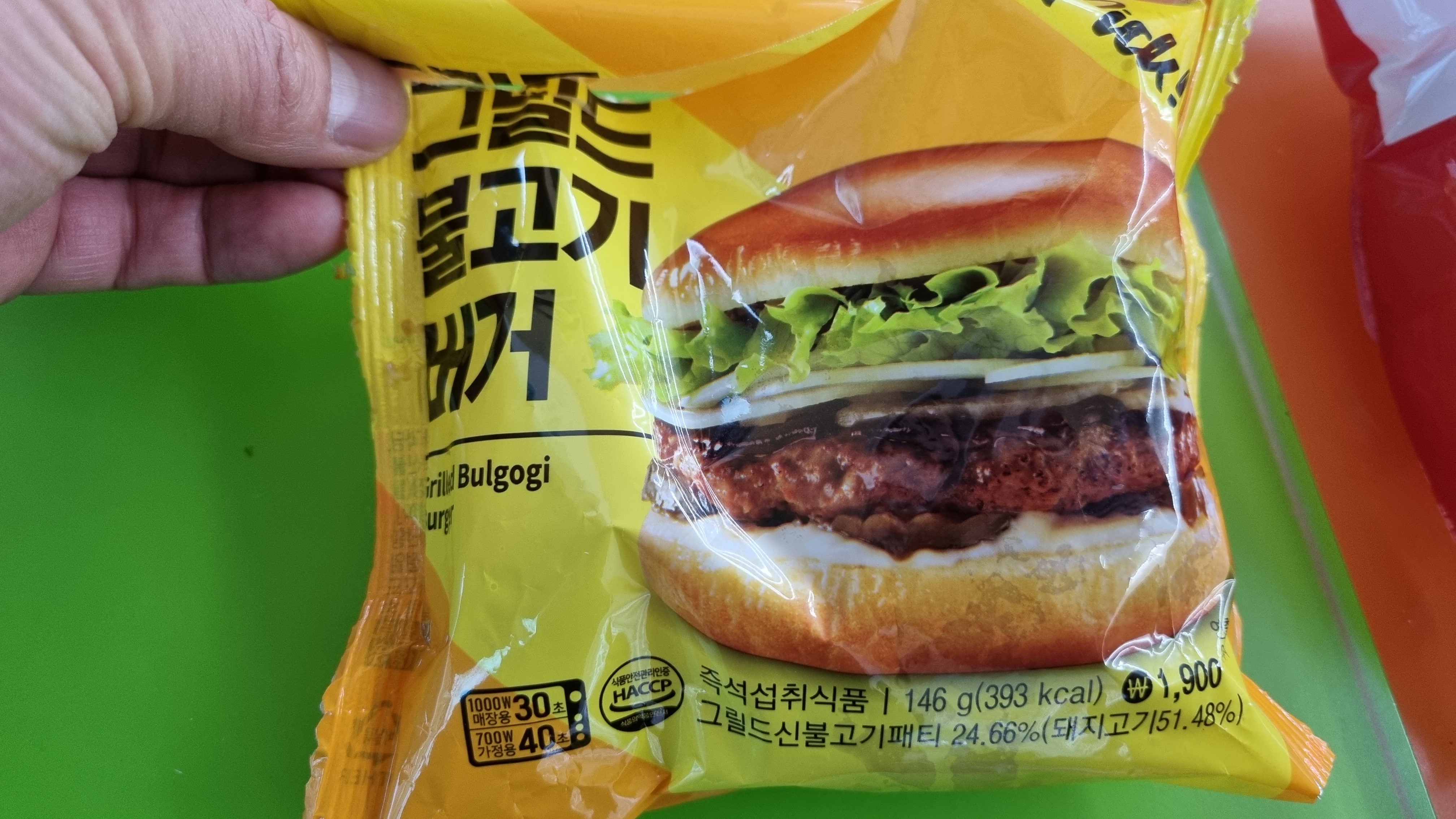 햄버거인데 가격이 1,900원이고 전문점에서 판매되는 것이 4천 원 정도 하는데 가격은 정말 저렴한 편입니다. 물론 맛은 조금 떨어지는데 그래도 가성비는 아주 좋습니다.
