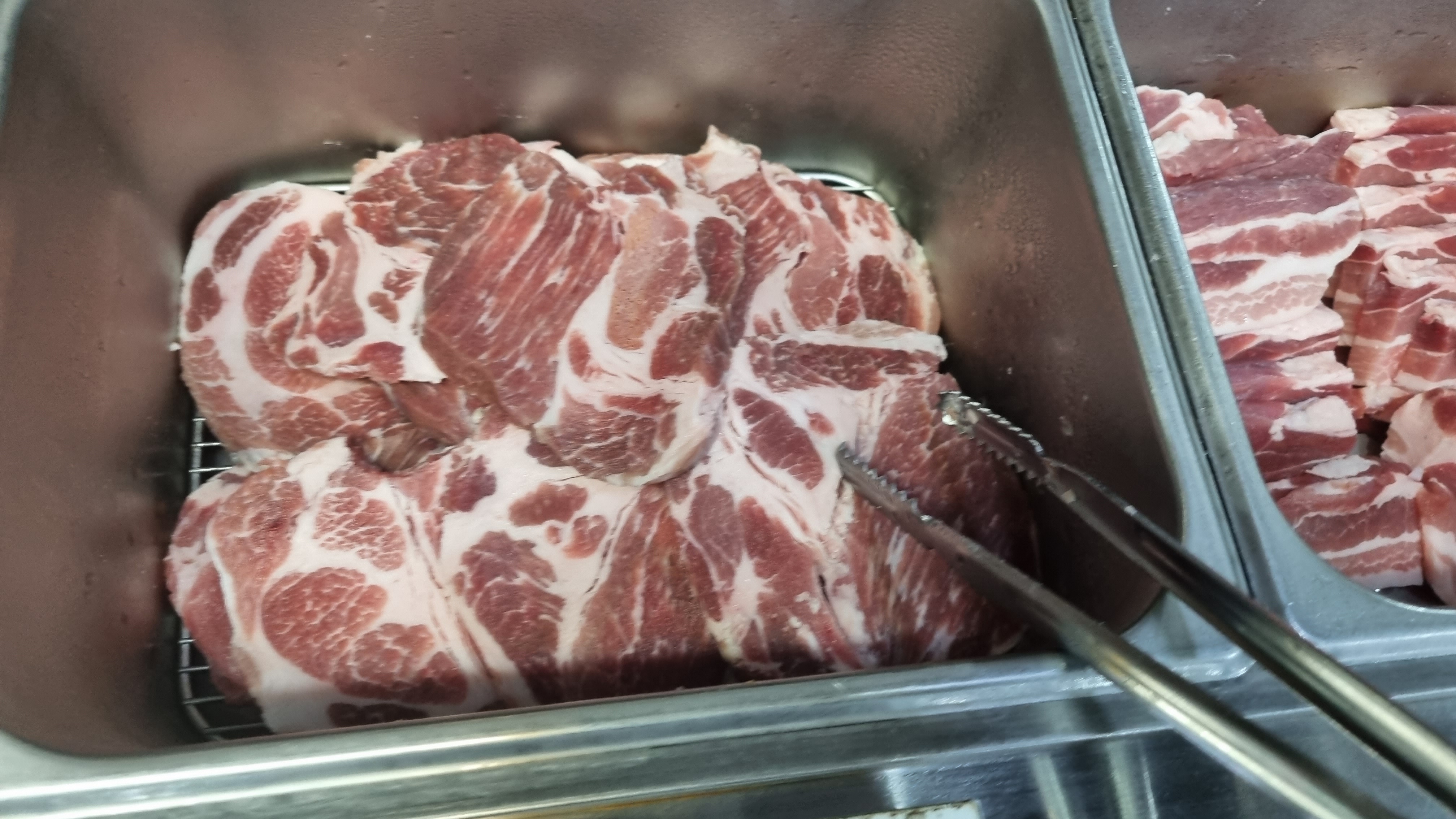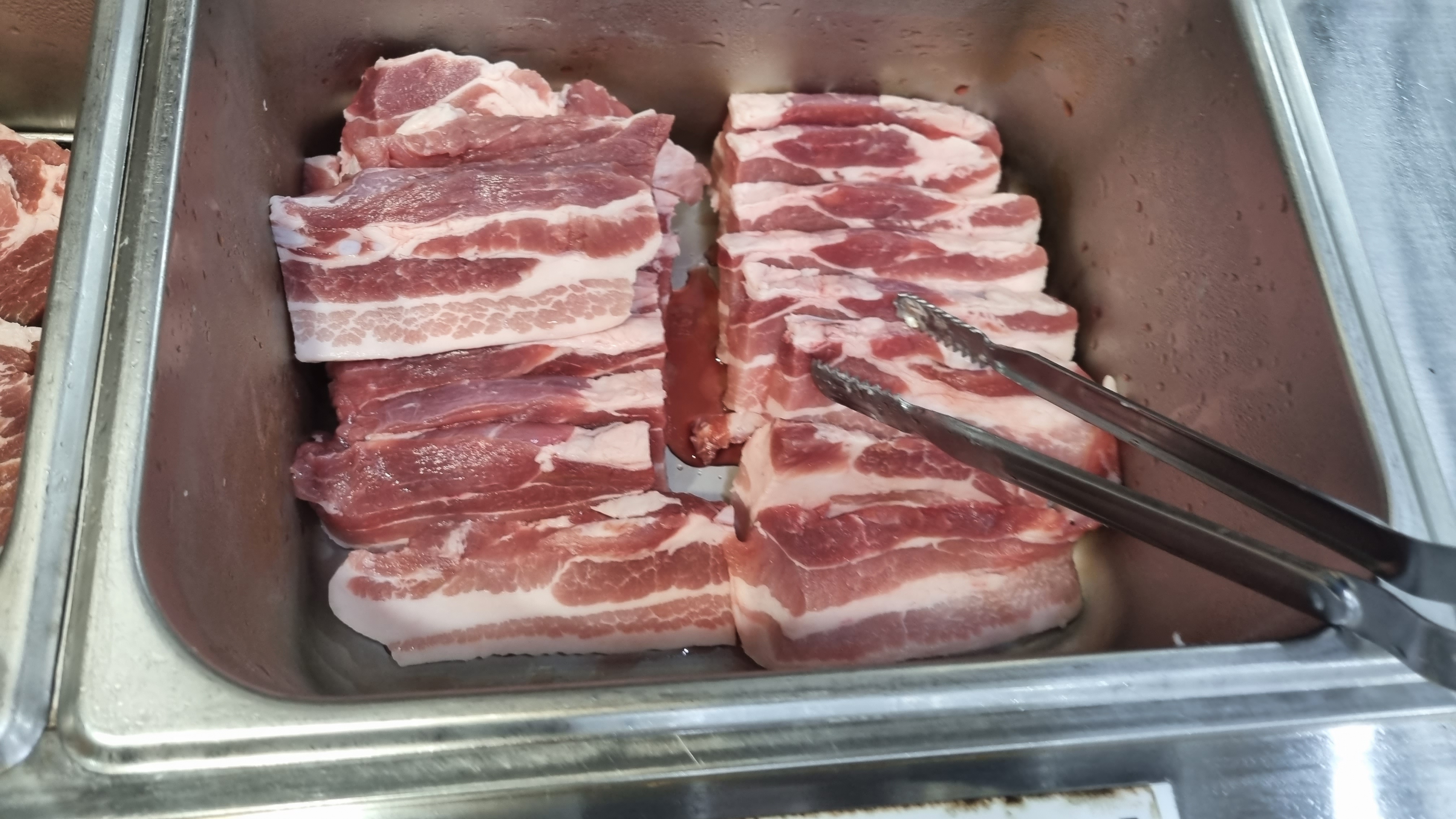 삼겹살과 목살이 아주 많이 준비되어 있고 계속 보충됩니다. 삼겹살은 두꺼운 것 얇은 것이 있는데 처음에는 배가 고파 얇은 것을 먼저 가져가 빨리 구워 먹는 것이 좋습니다.