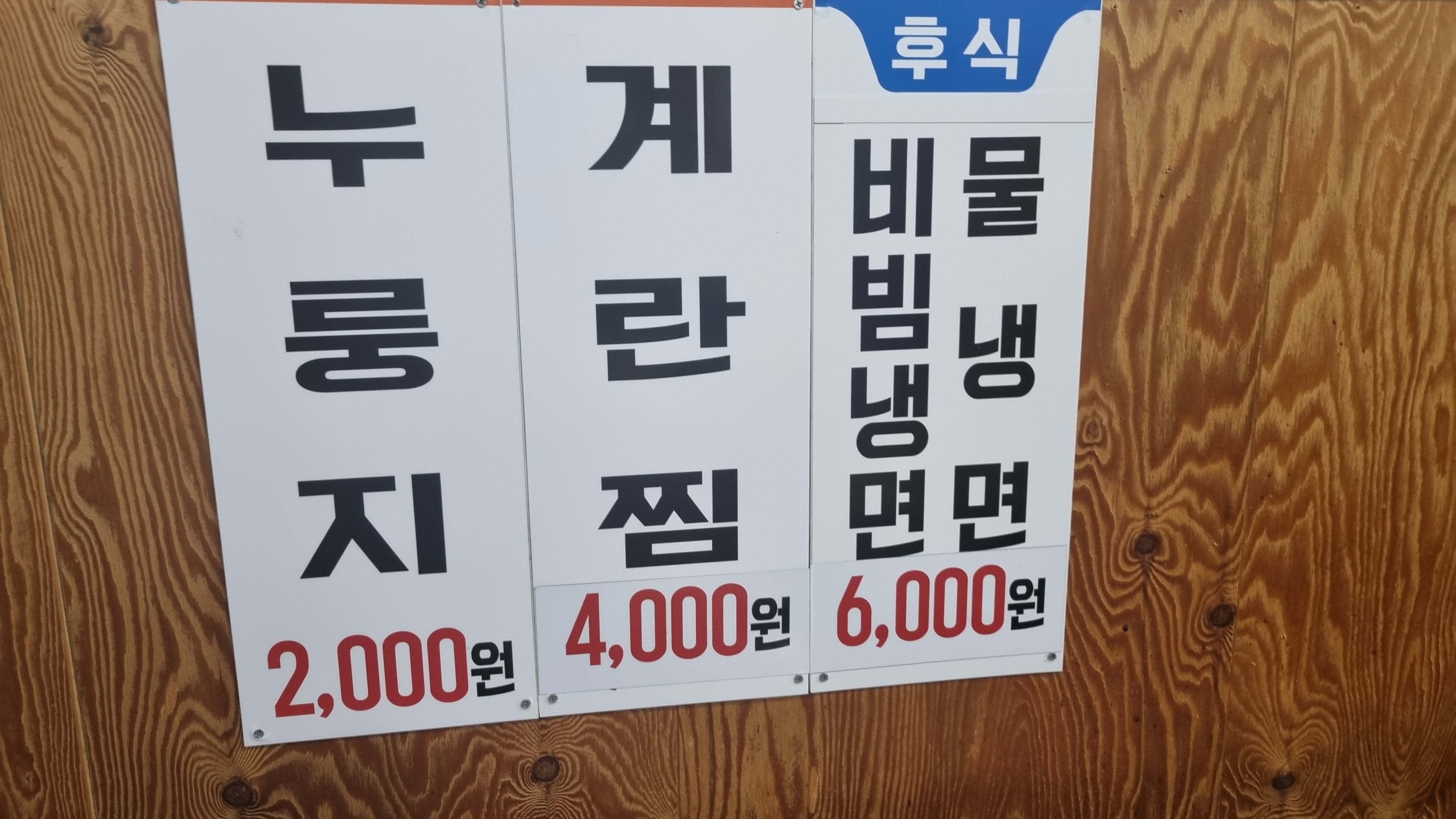 후식으로 물냉면과 비빔냉면도 있는데 가격은 6천 원씩이며 누룽지도 있는데 가격은 2천 원입니다. 계란찜도 별도로 판매하는데 4천 원으로 양은 상당히 많습니다.