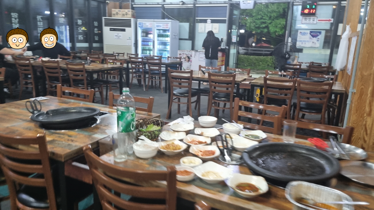 자리를 잡으면 처음엔 불판과 기본 반찬 세팅이 됩니다. 이후부터는 모든 것이 셀프로 진행이 되는데 음료, 주류 후식은 종업원에게 별도 주문할 수 있습니다.