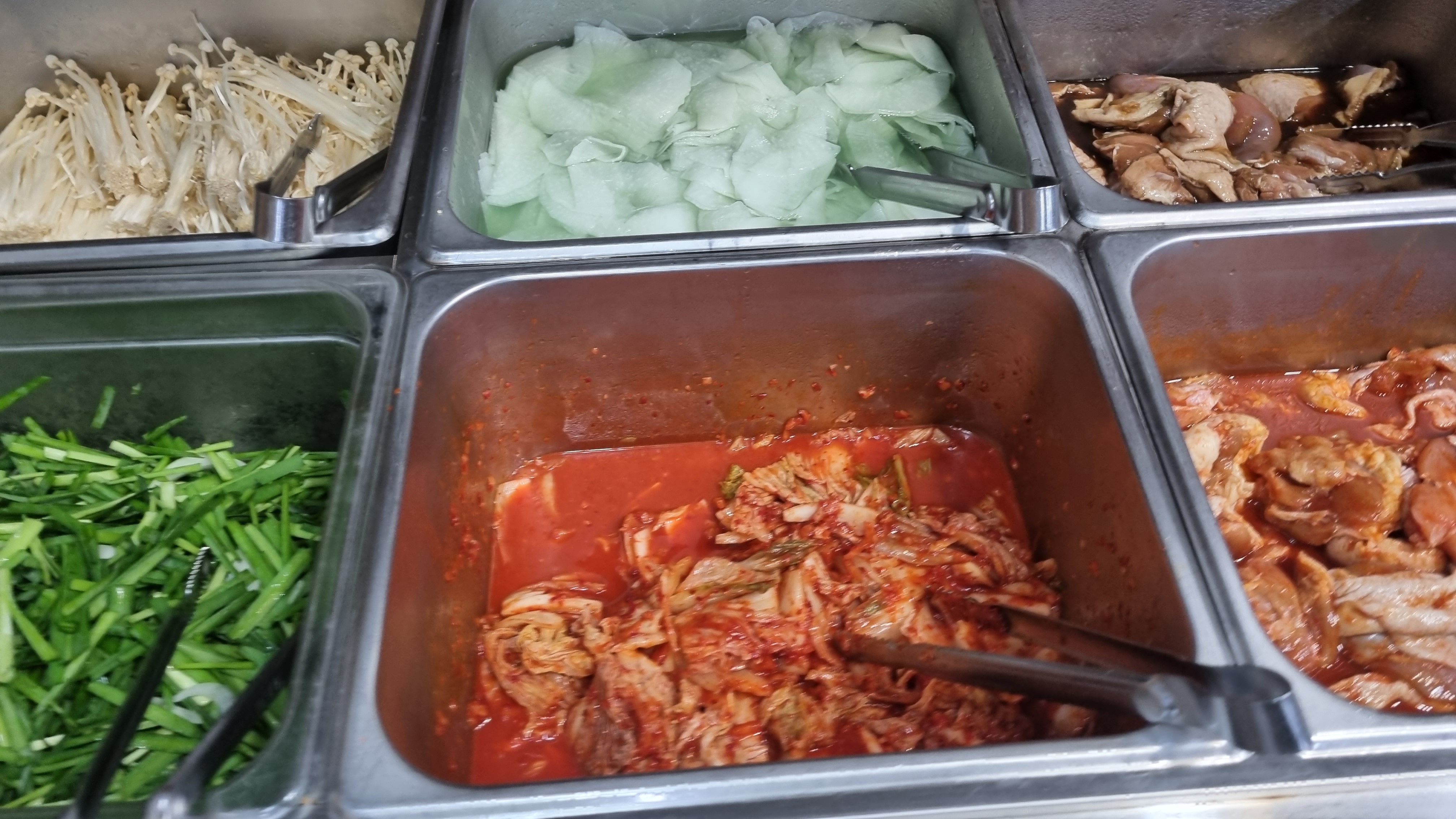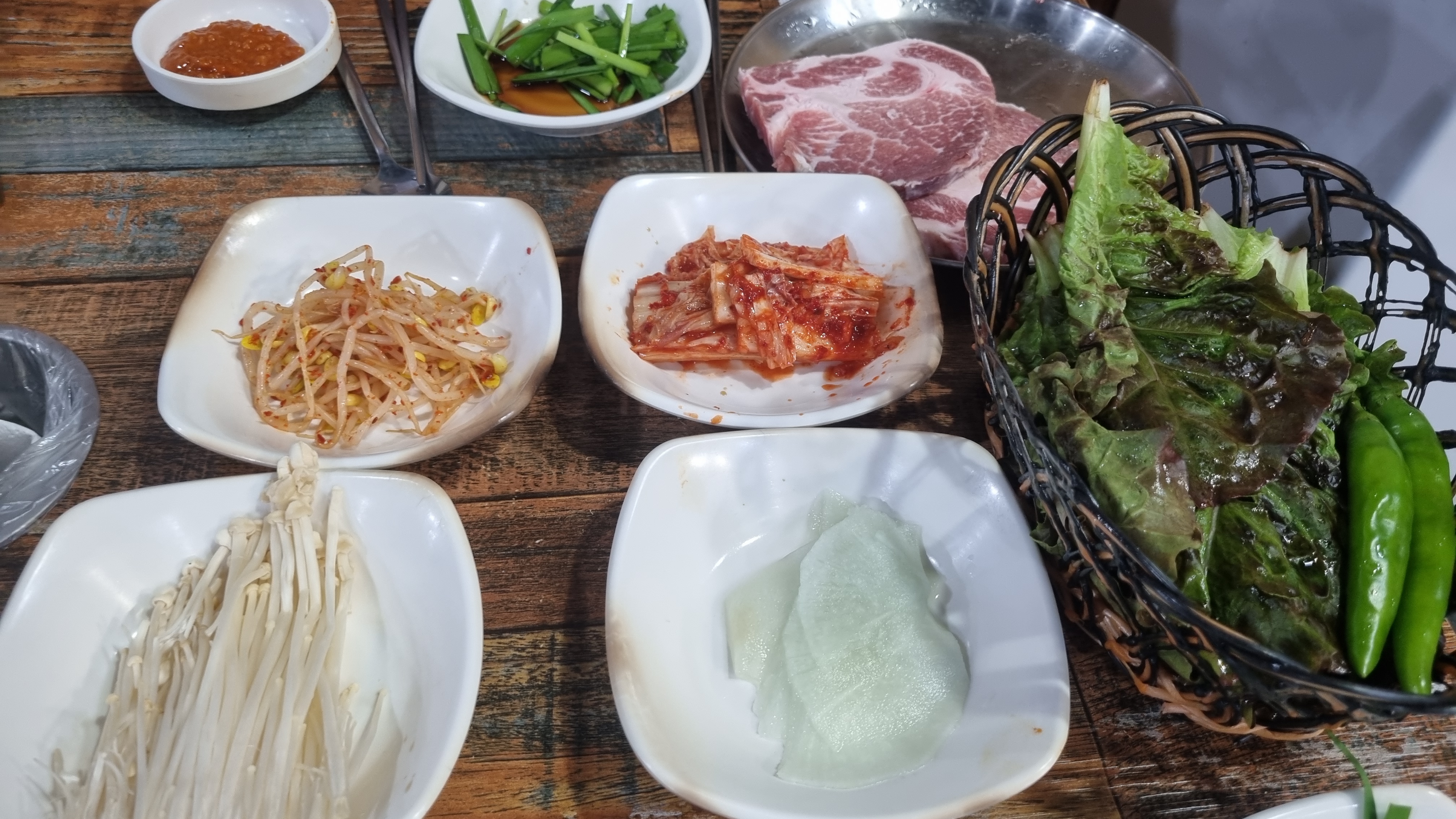 쌈무, 김치, 부추, 팽이버섯, 상추, 고추, 마늘등도 풍족하게 준비되어 있습니다.