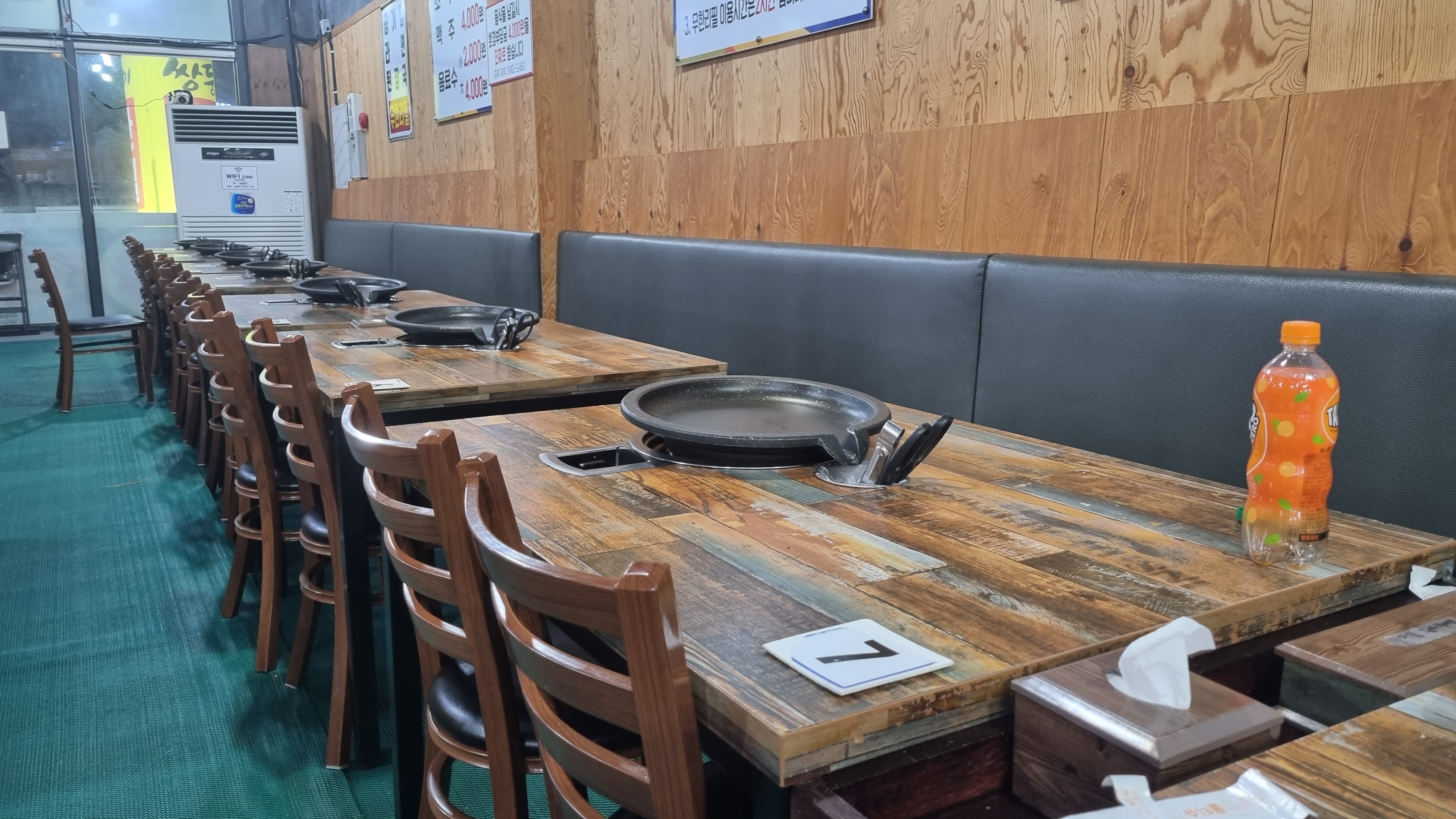 식당은 상당한 크고 넓습니다. 입식으로 된 테이블이 수십 개가 있으며 반 룸형태로 예약할 수 있는 테이블도 있습니다. 소수의 지인들과 함께해도 좋고 회사나 동창회 친목모임 등 단체 회식장소로도 적당합니다.