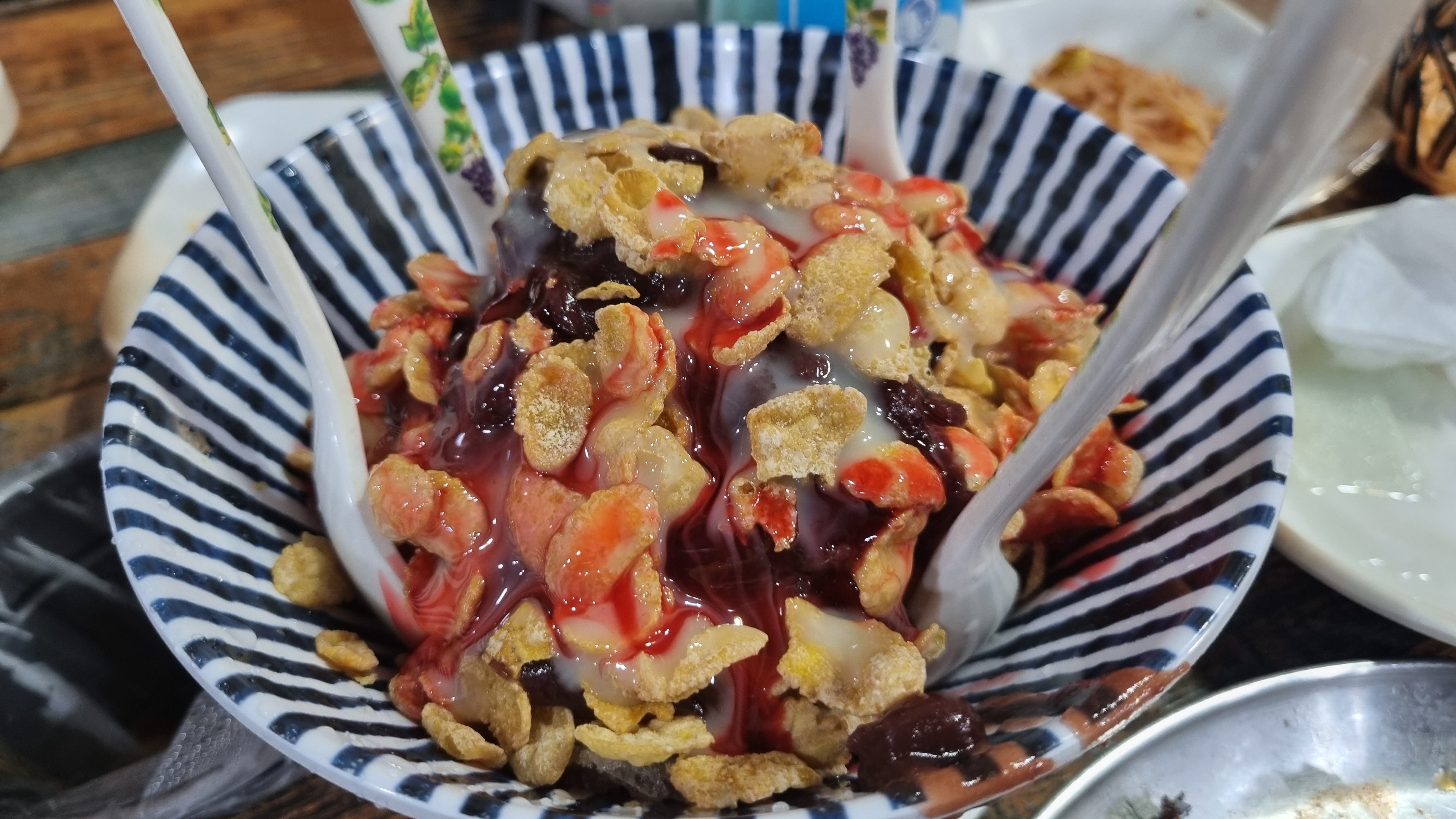 배가 부르지만 팥빙수가 저렴하여 하나 주문했습니다. 가격은 2천 원인데 4명이서 하나만 시켜 맛을 보았는데 생각보다 맛있습니다.