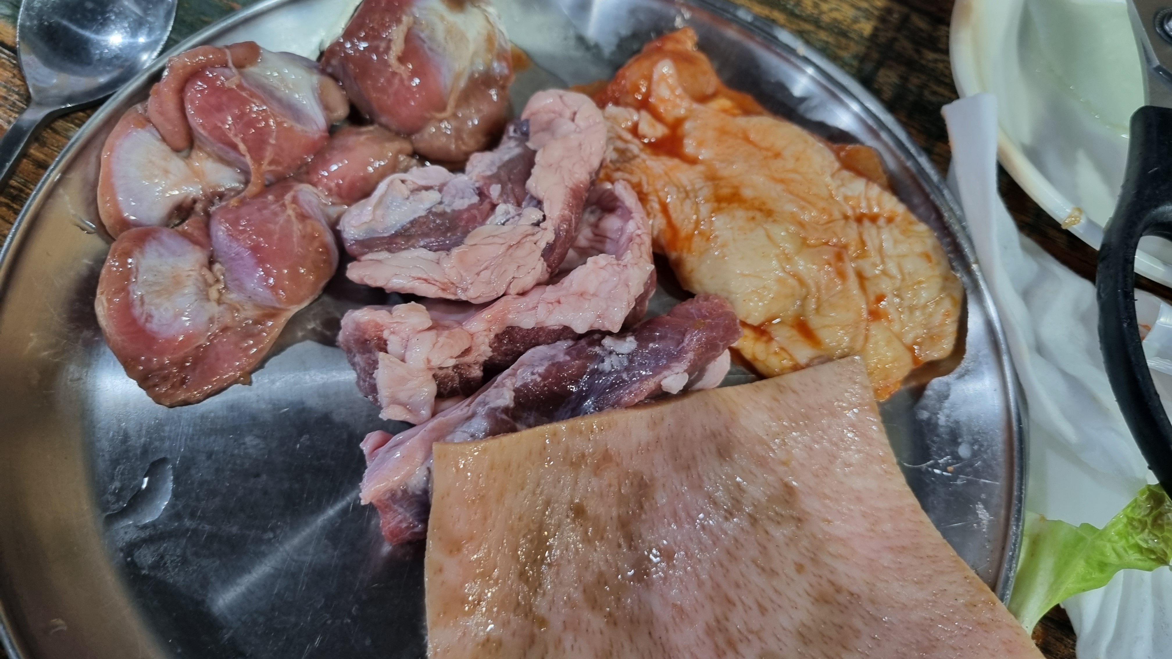 삼겹살과 목살, 우삼겹을 많이 먹은 후 닭갈비와 갈매기살, 달똥집, 돼지껍질을 추가로 가져왔습니다. 필자는 돼지껍질과 닭똥집이 먹고 싶었습니다.