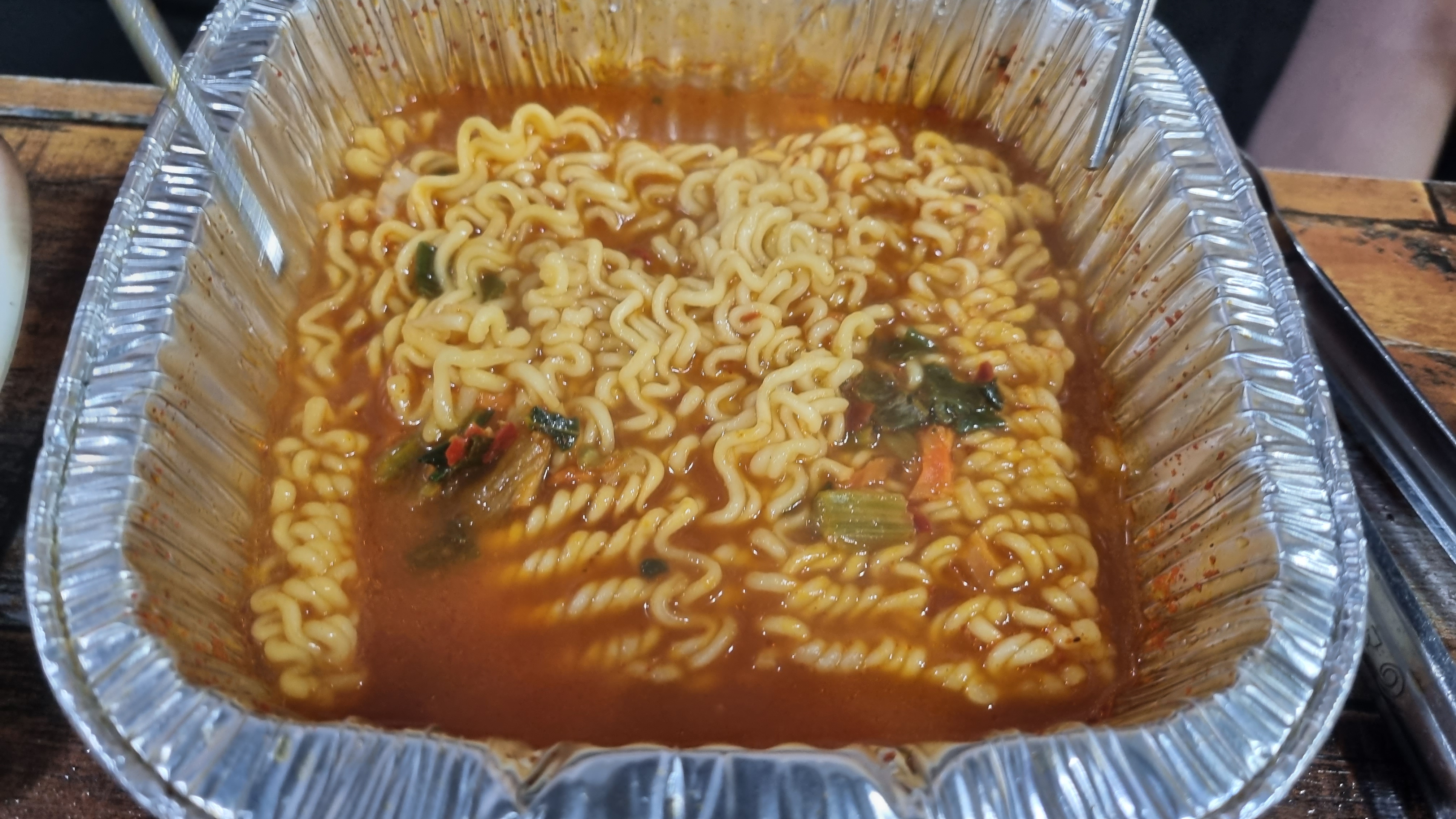 근데 여기서 이렇게 라면까지 먹으니 기분이 정말 좋습니다.