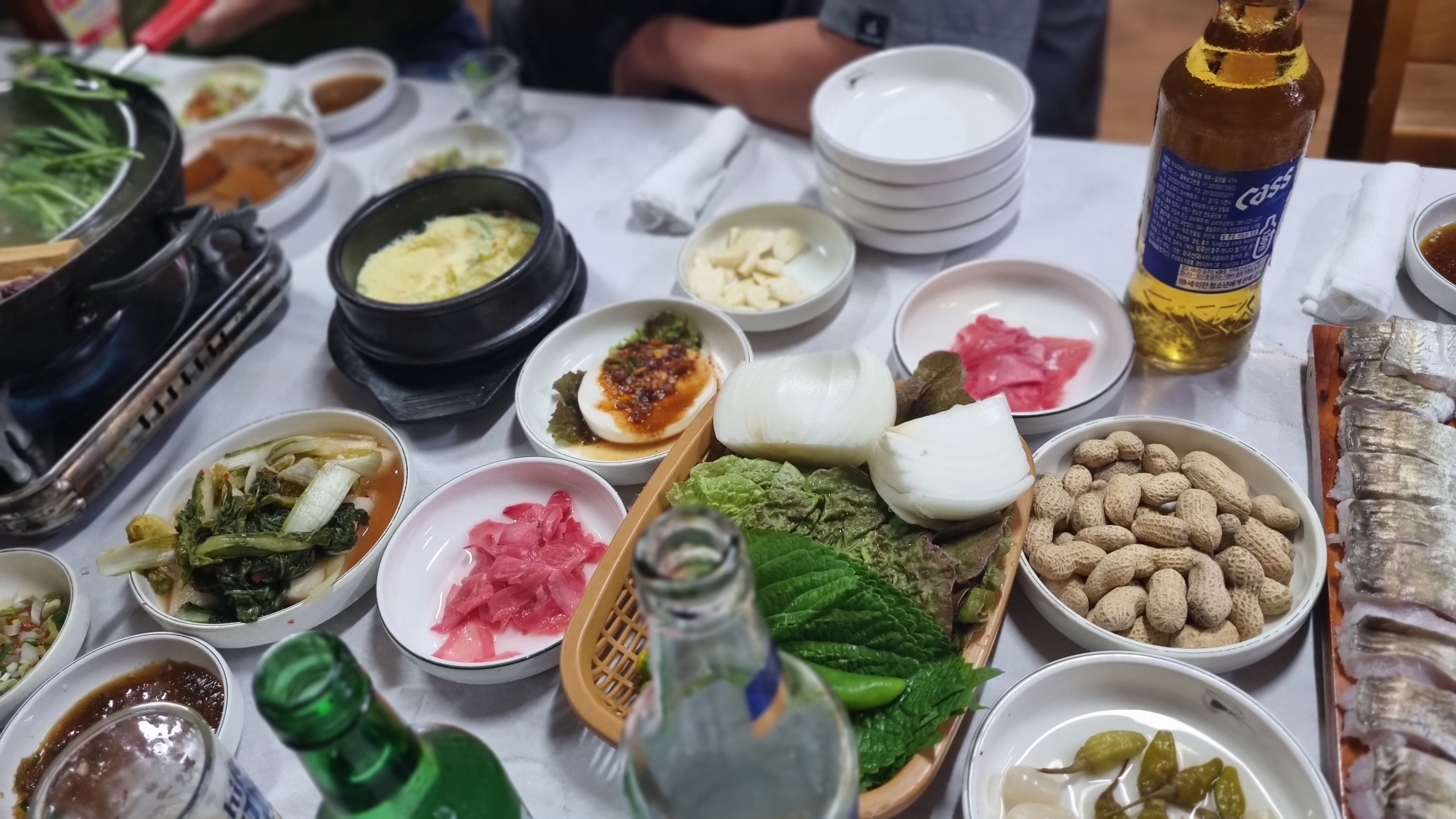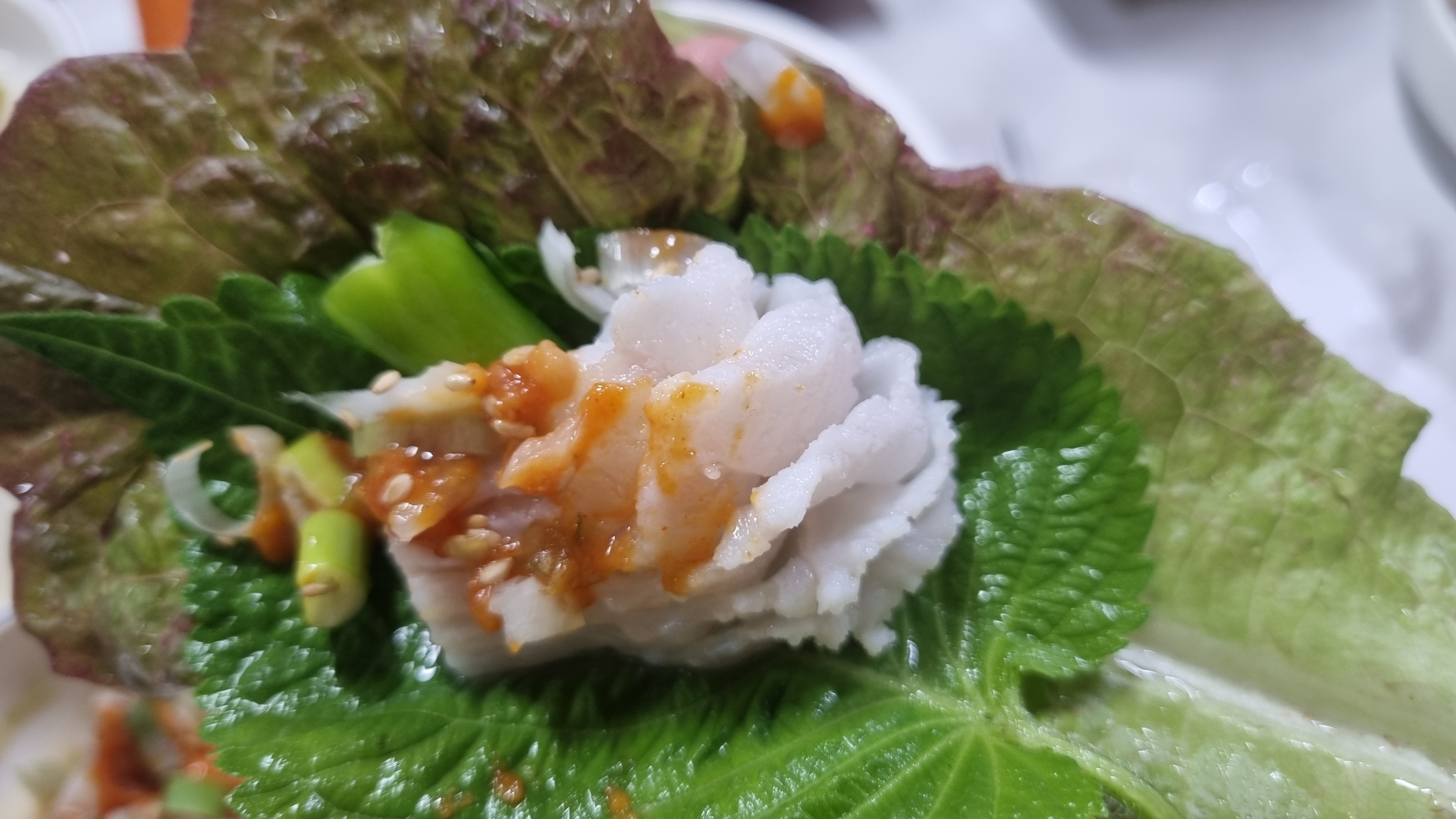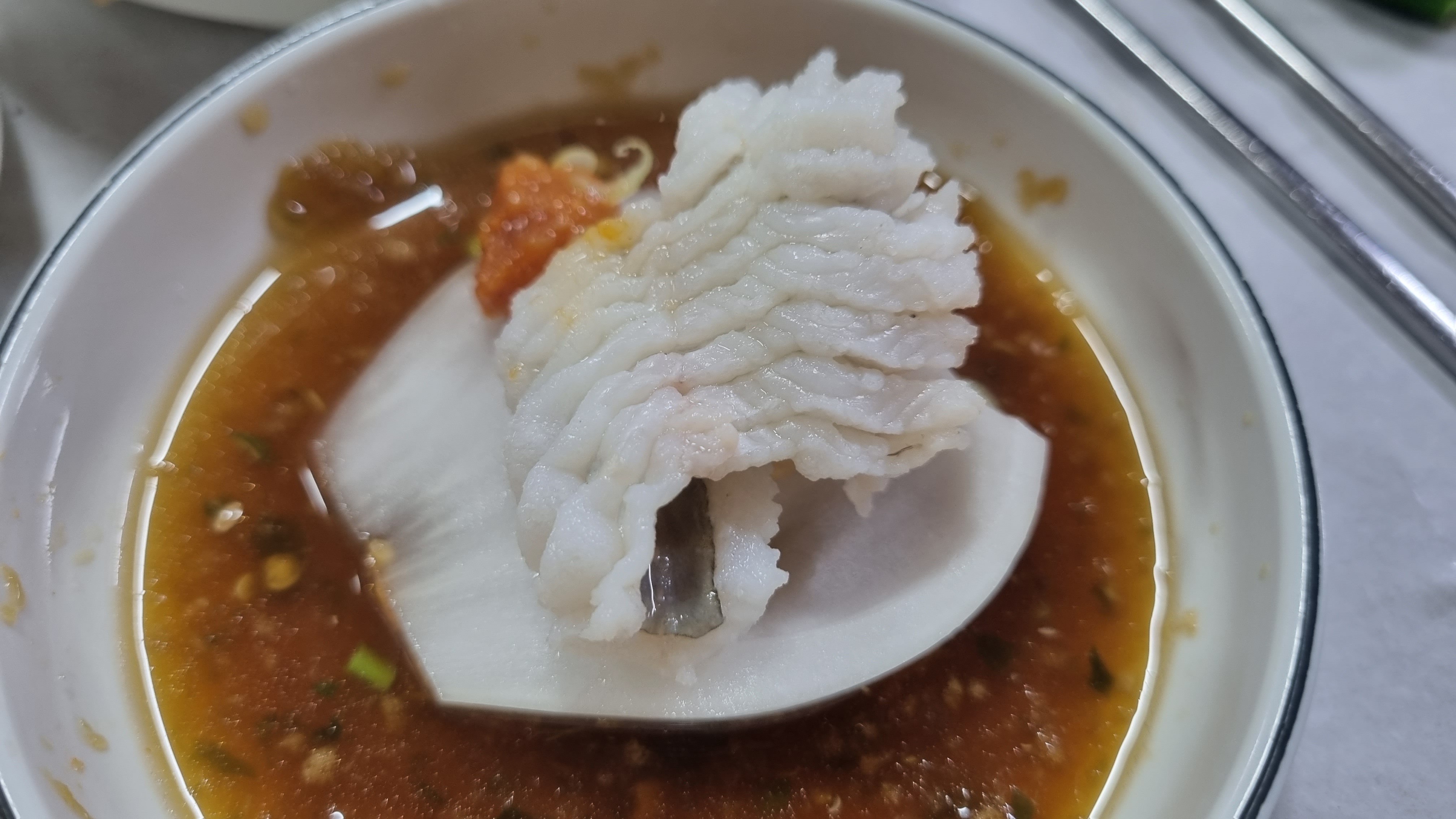 이렇게 살짝 담가 전용 양념장에 찍어드시면 정말 맛있습니다. 저렴한 식당이지만 맛은 정말 좋고 모두들 맛있다고 합니다.