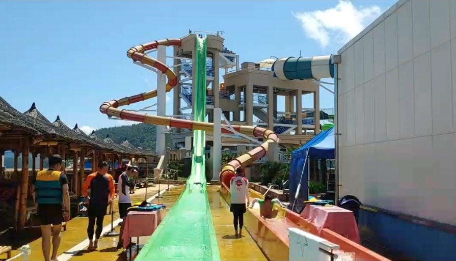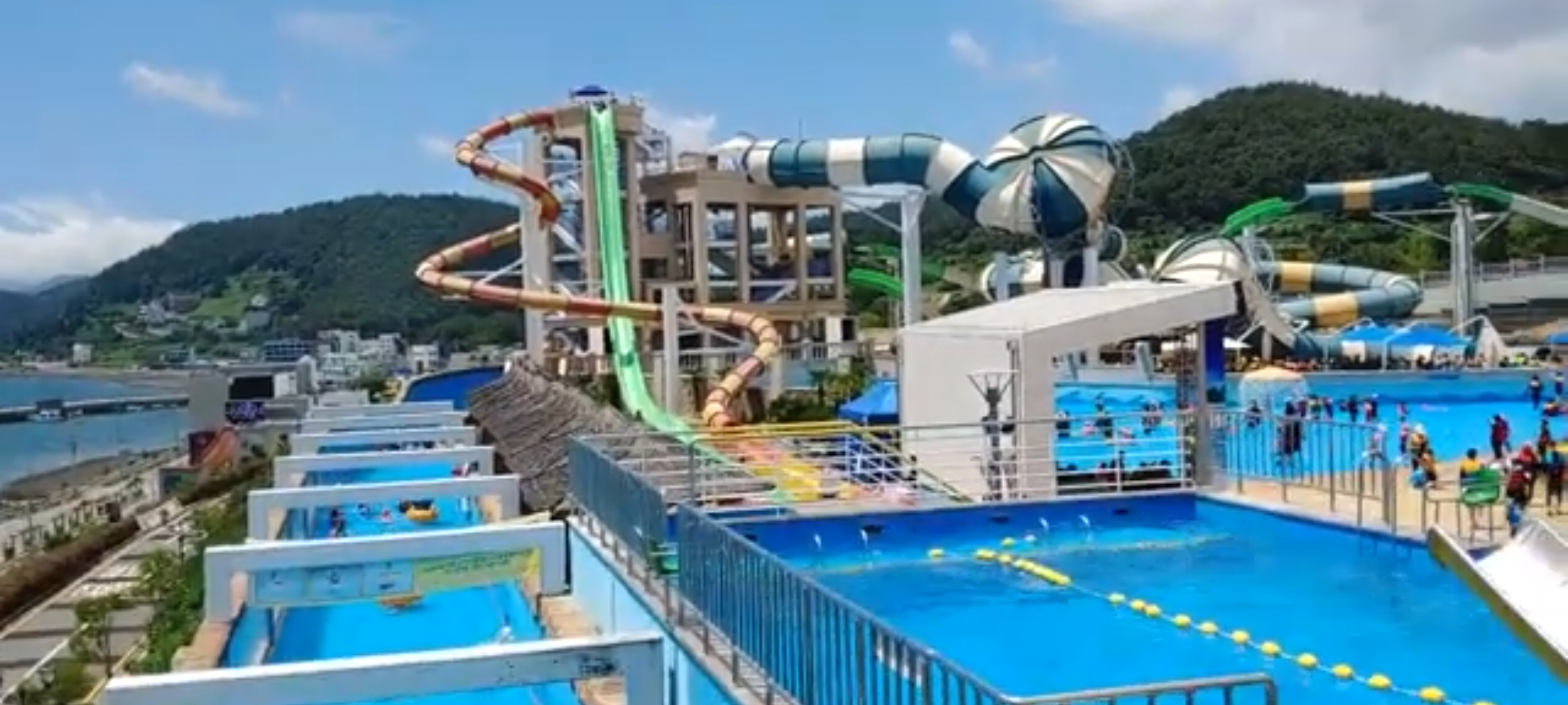 한눈에 보는 워터파크 모습인데요 바로 옆에 여수바다가 있어 전망은 아주 좋습니다.