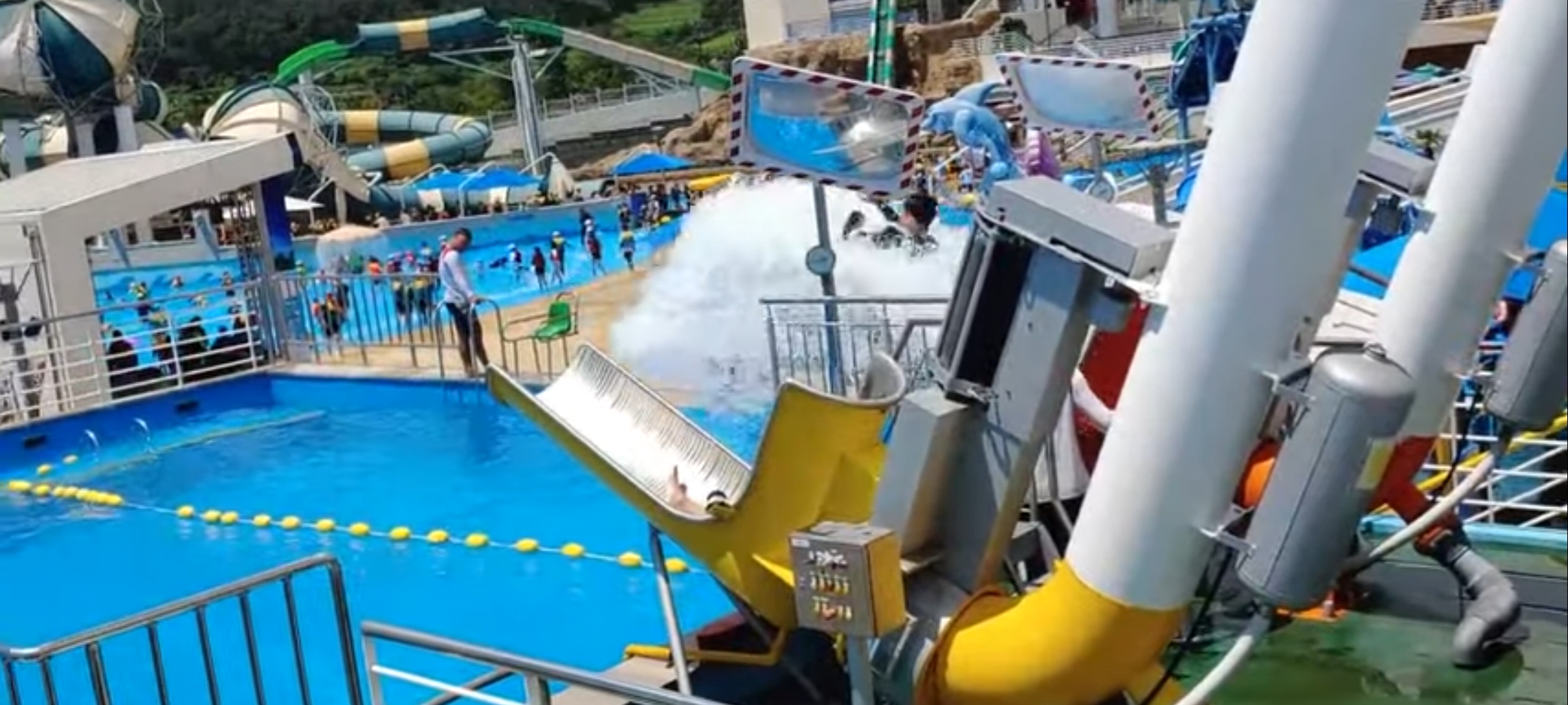 이곳은 케논볼인데 저위에 사람이 대기하고 있다가 강력한 수압의 물로 사람을 밀어내어 마치 인간 대포알 같이 나가는 것입니다.