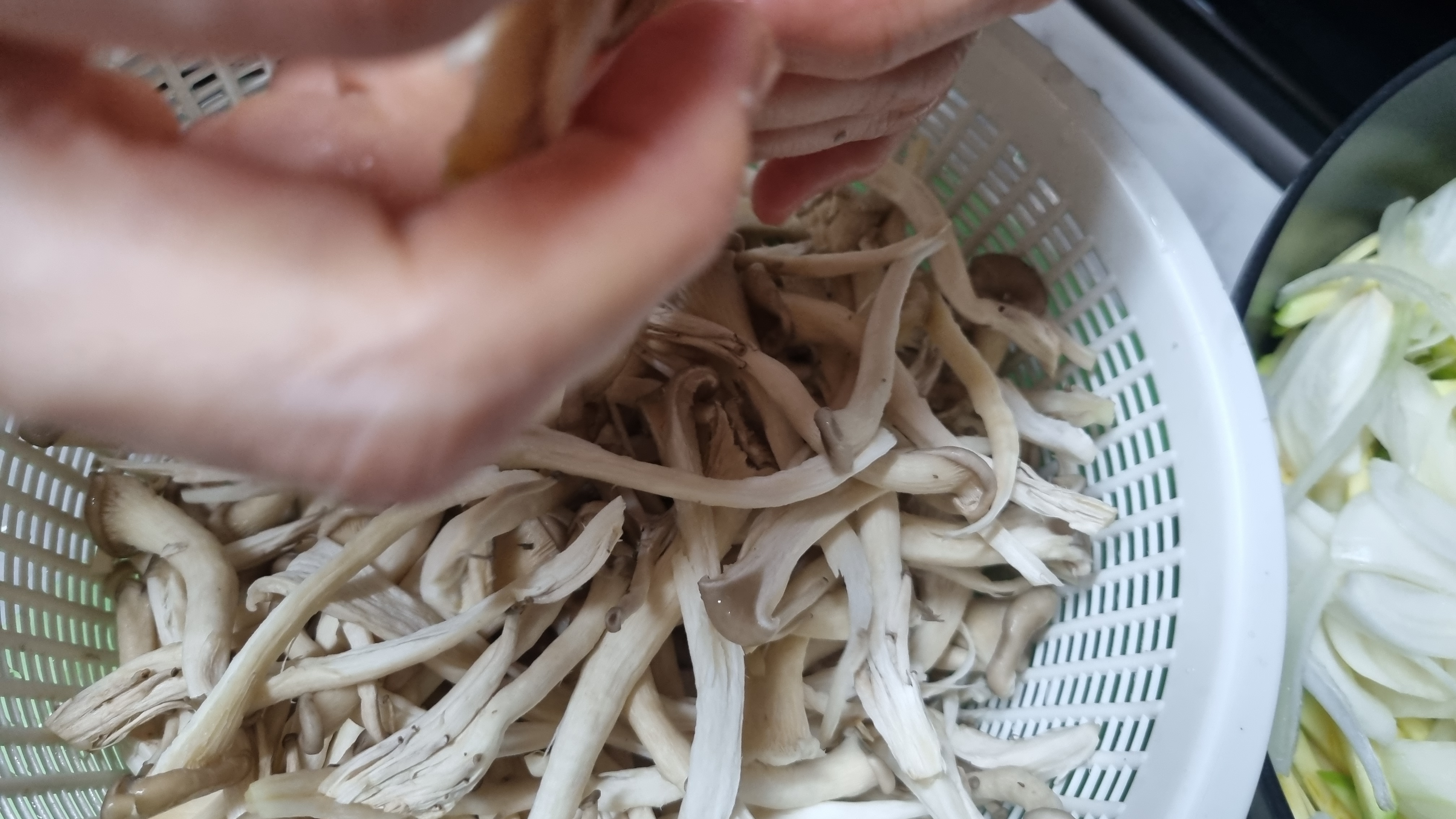 손질을 해야 하는데 아주 간단합니다. 씻기 전에 위의 사진처럼 잘게 찢어주는데 결 따라 손으로 가볍고 잡아당기면 잘 찢어지므로 쉽게 가능합니다.