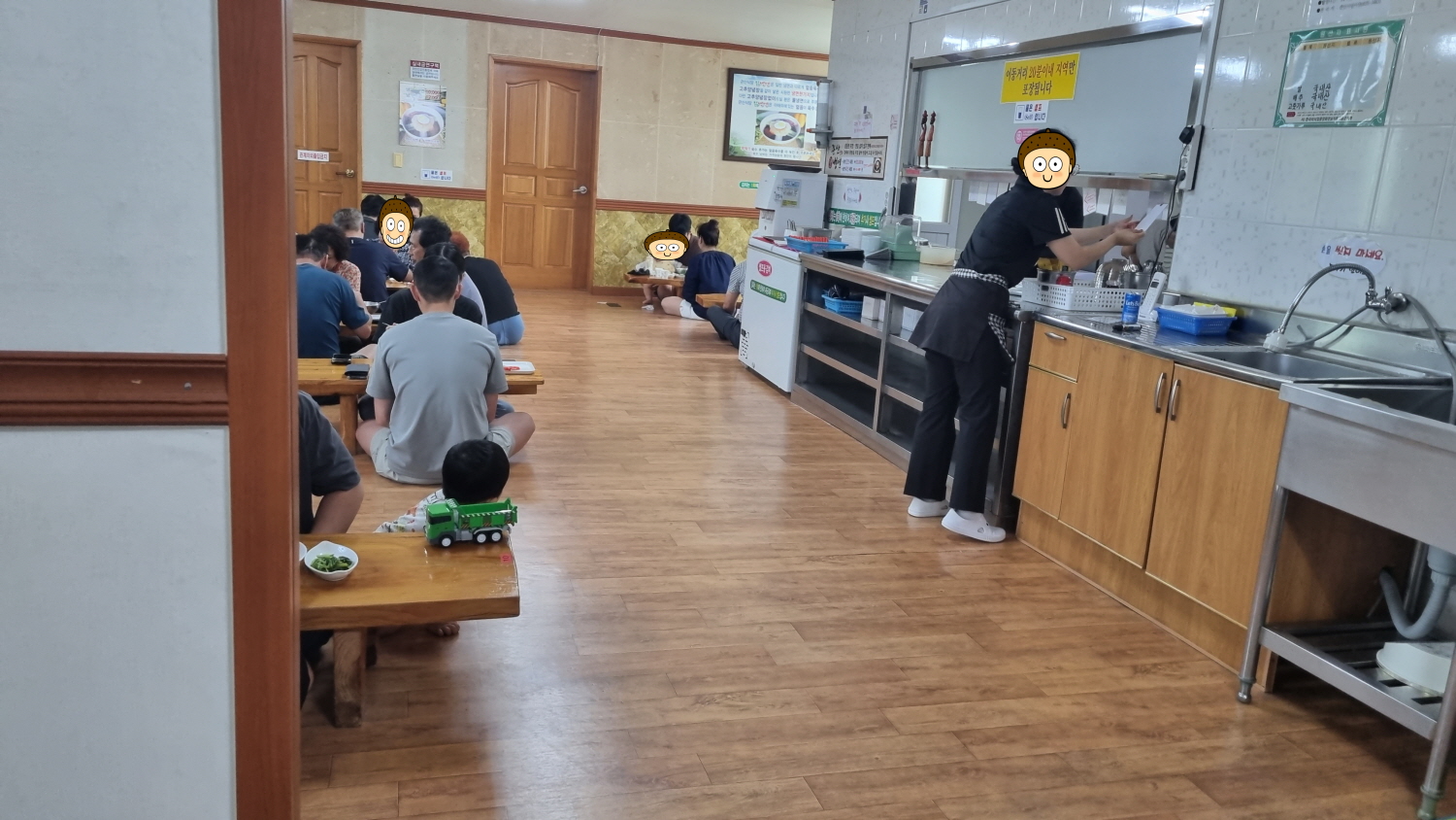 반찬도 간단하게 나오는데 열무김치와 무백김치 딱 두 가지 나오며 처음에는 그냥 세팅되고 추가로 필요하면 셀프로 리필할 수 있습니다.