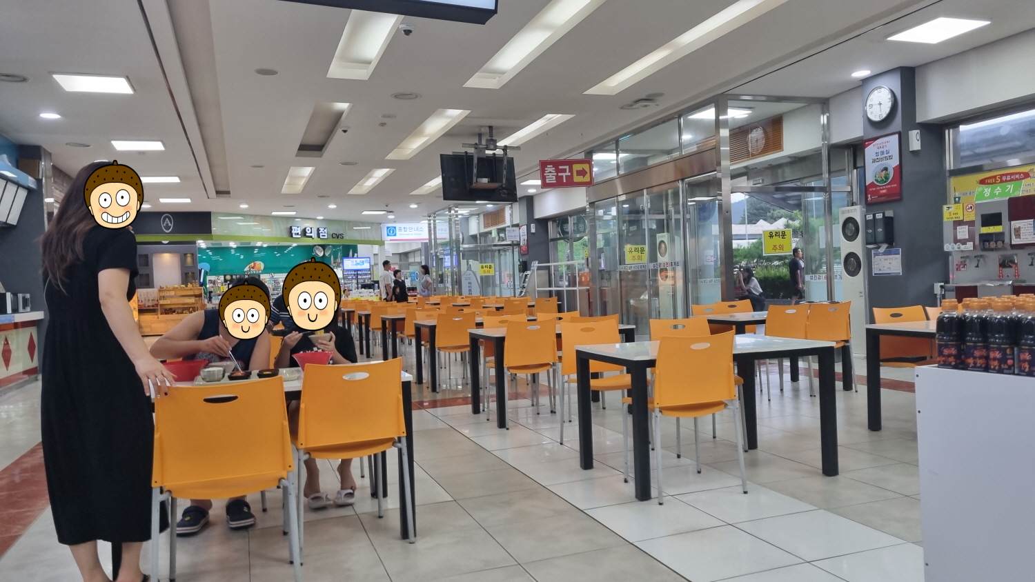 휴게소는 깔끔하고 식사를 할 수 있는 식당이 한식, 양식, 분식이 있으며 테이블이 상당히 많이 있어 자리는 여유롭게 있습니다.