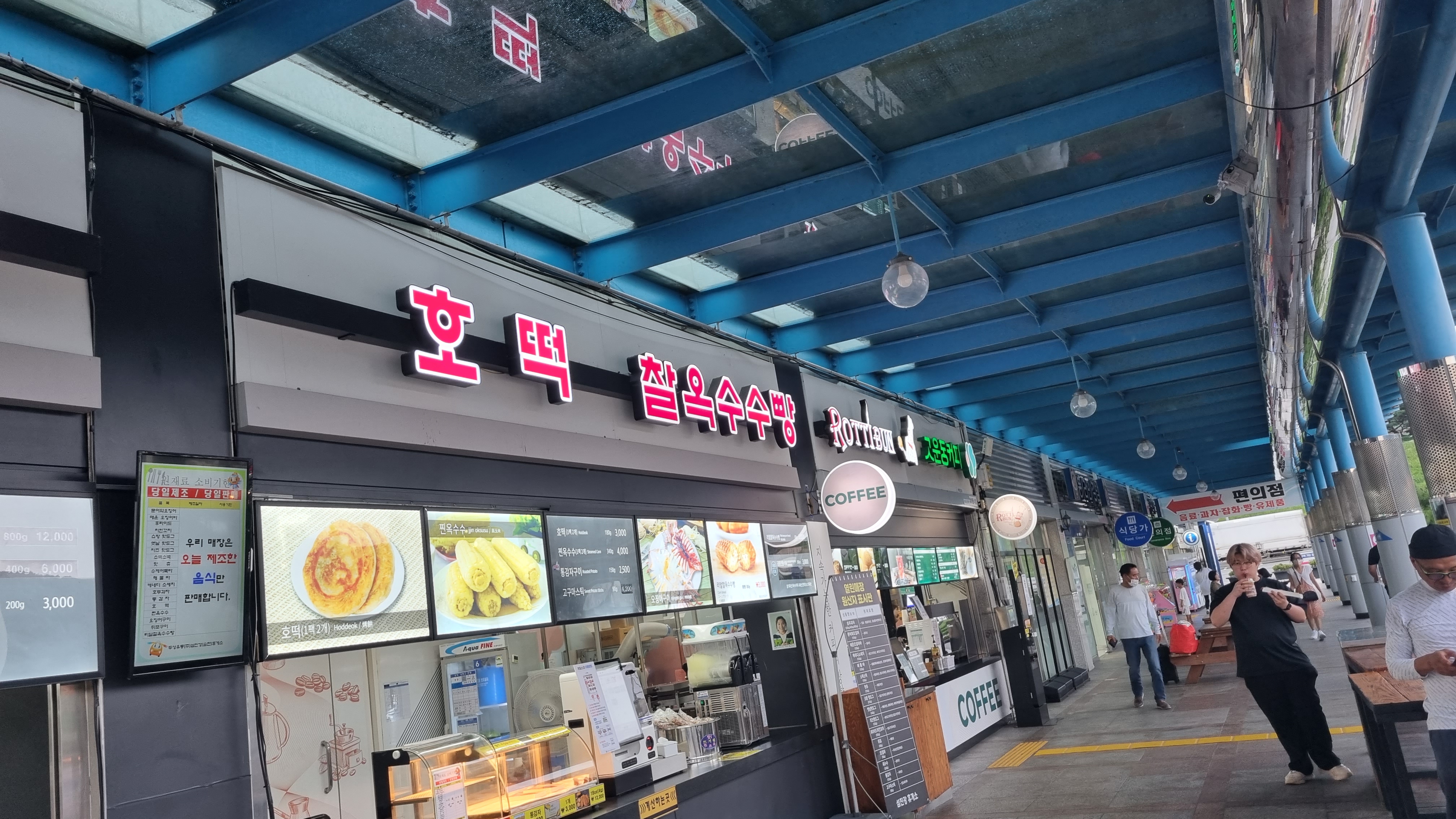 휴게소 내에 호두과자 호떡, 찰옥수수빵등을 판매하고 핫바 소시지등을 판매하는 코너가 있어 간식을 구입하고 드시기에도 좋습니다