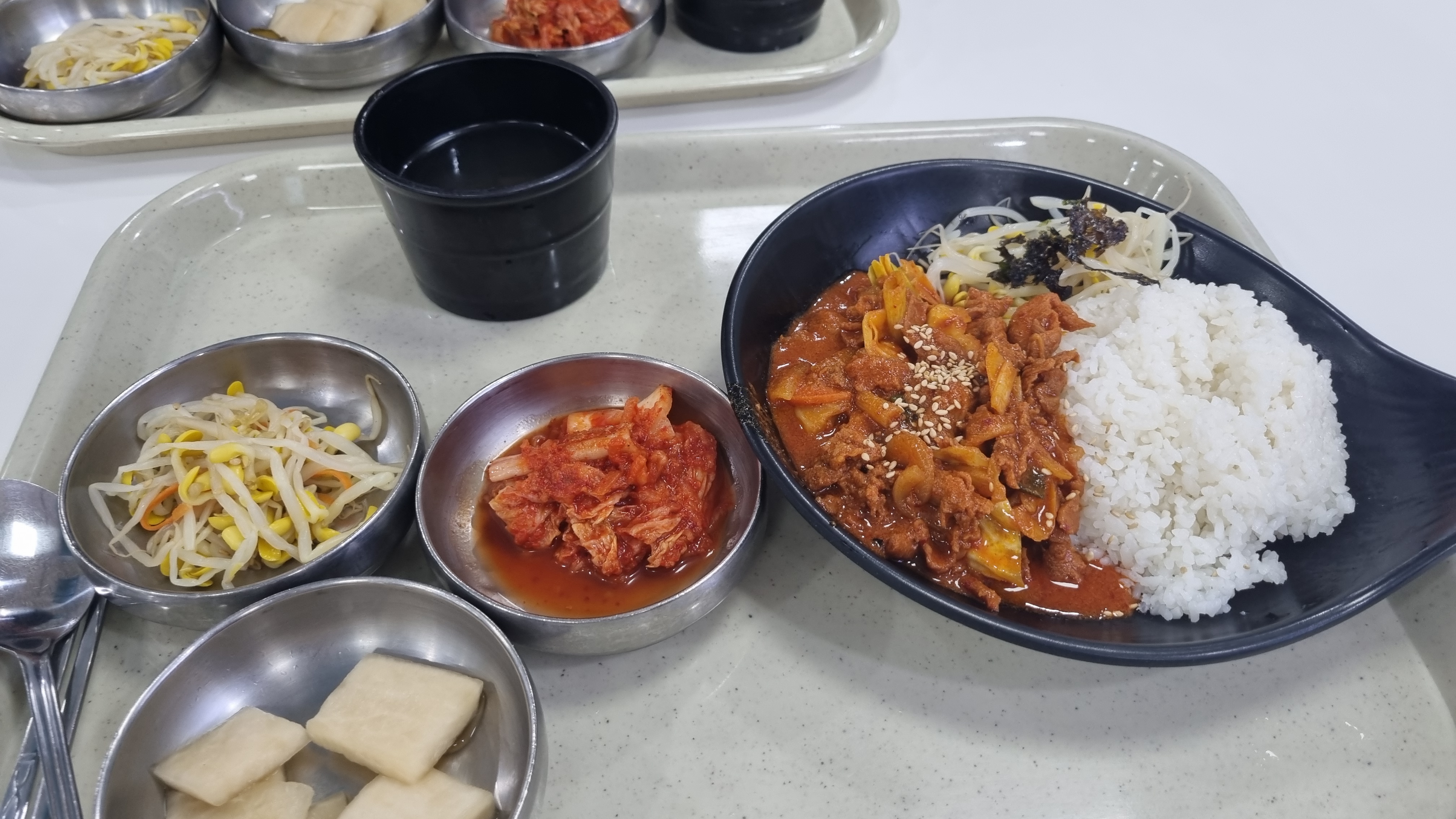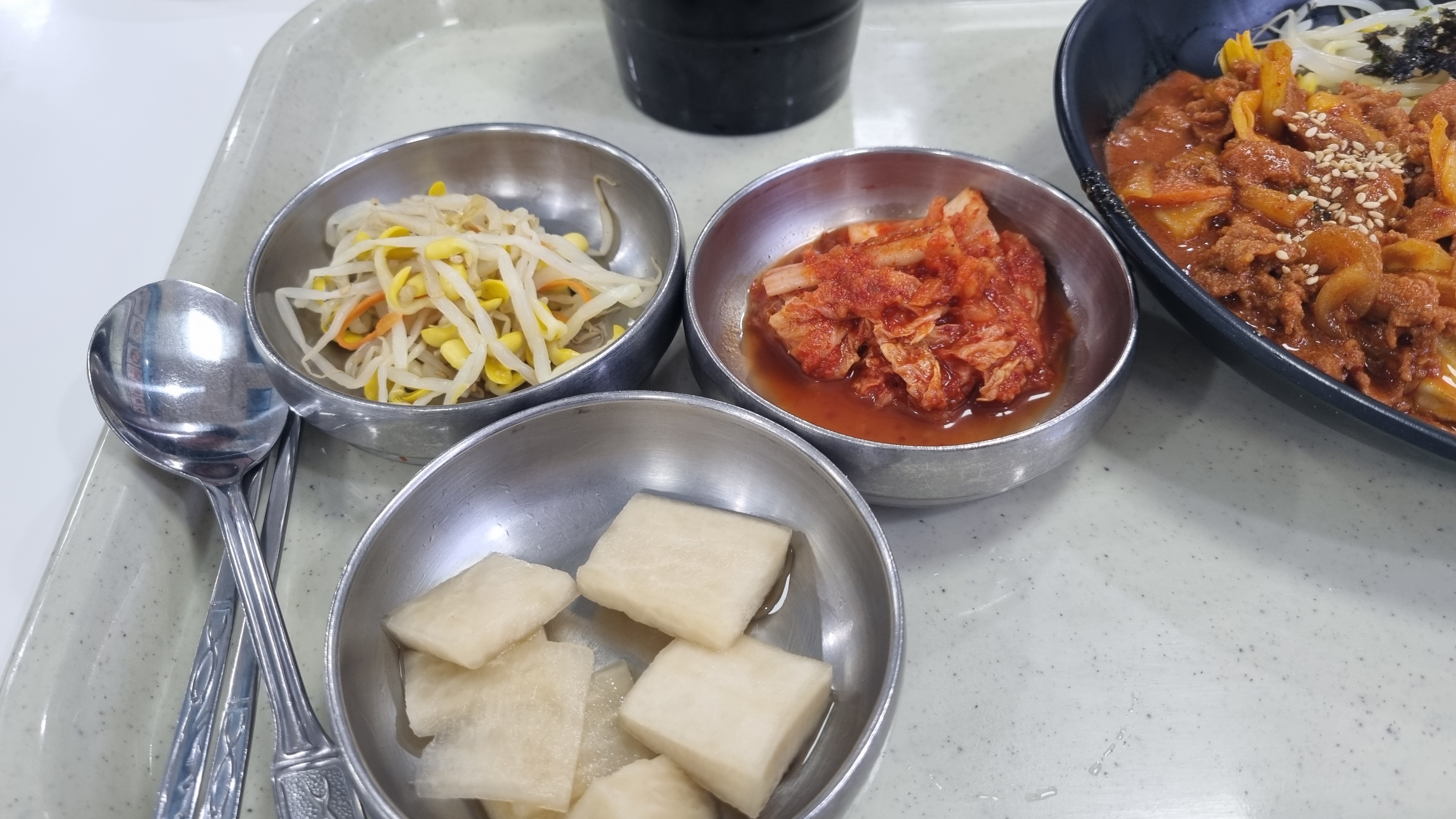 반찬은 콩나물과 배추김치, 물깍두기 김치가 나왔습니다.