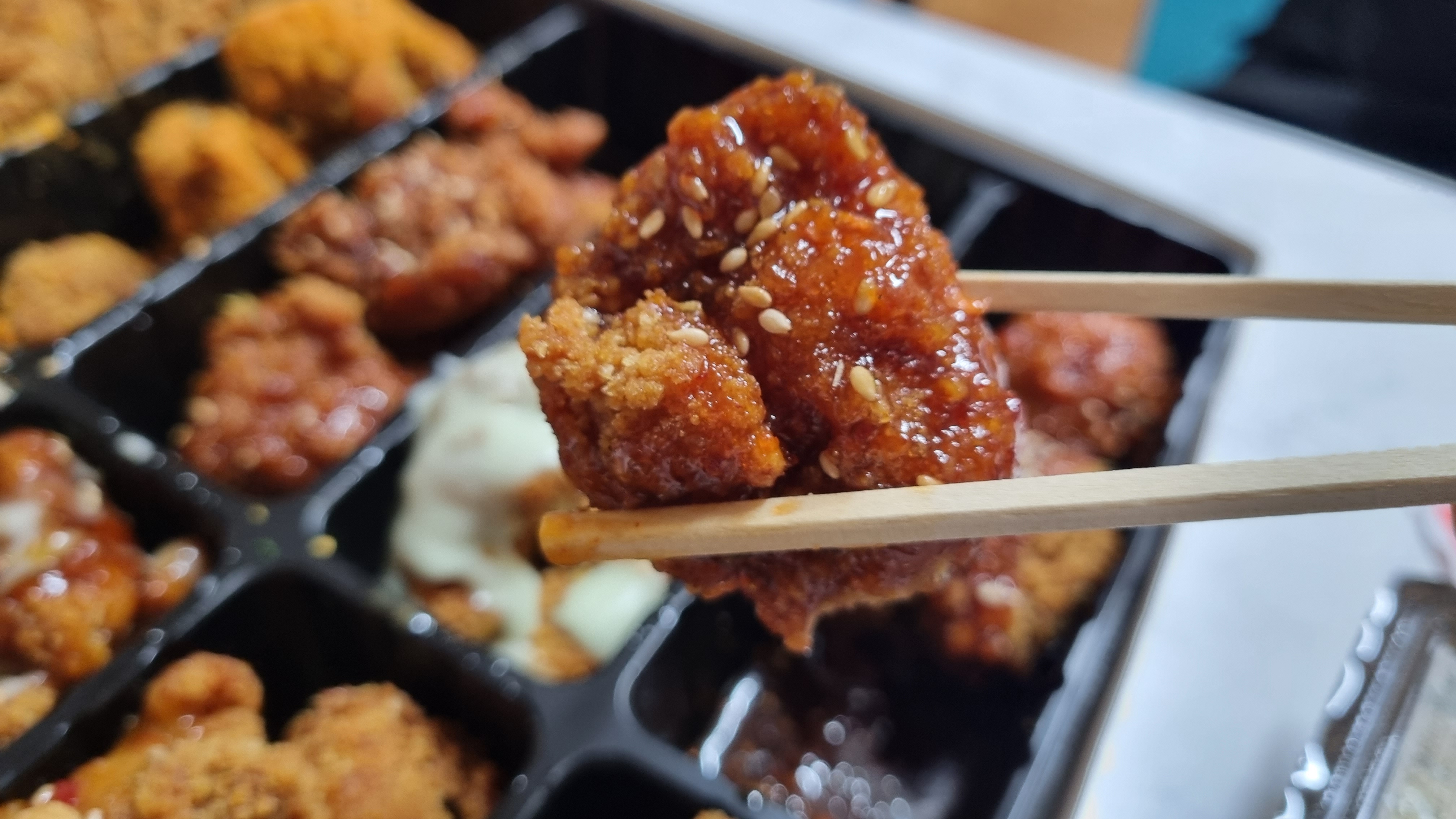 오른쪽은 주로 매운치킨들이 있는데 2가지가 매운맛이 있고 그중 하나는 상당히 매워 초등학생들이 먹기 힘들 정도이고 나머지 하나는 중간정도 매운맛입니다.