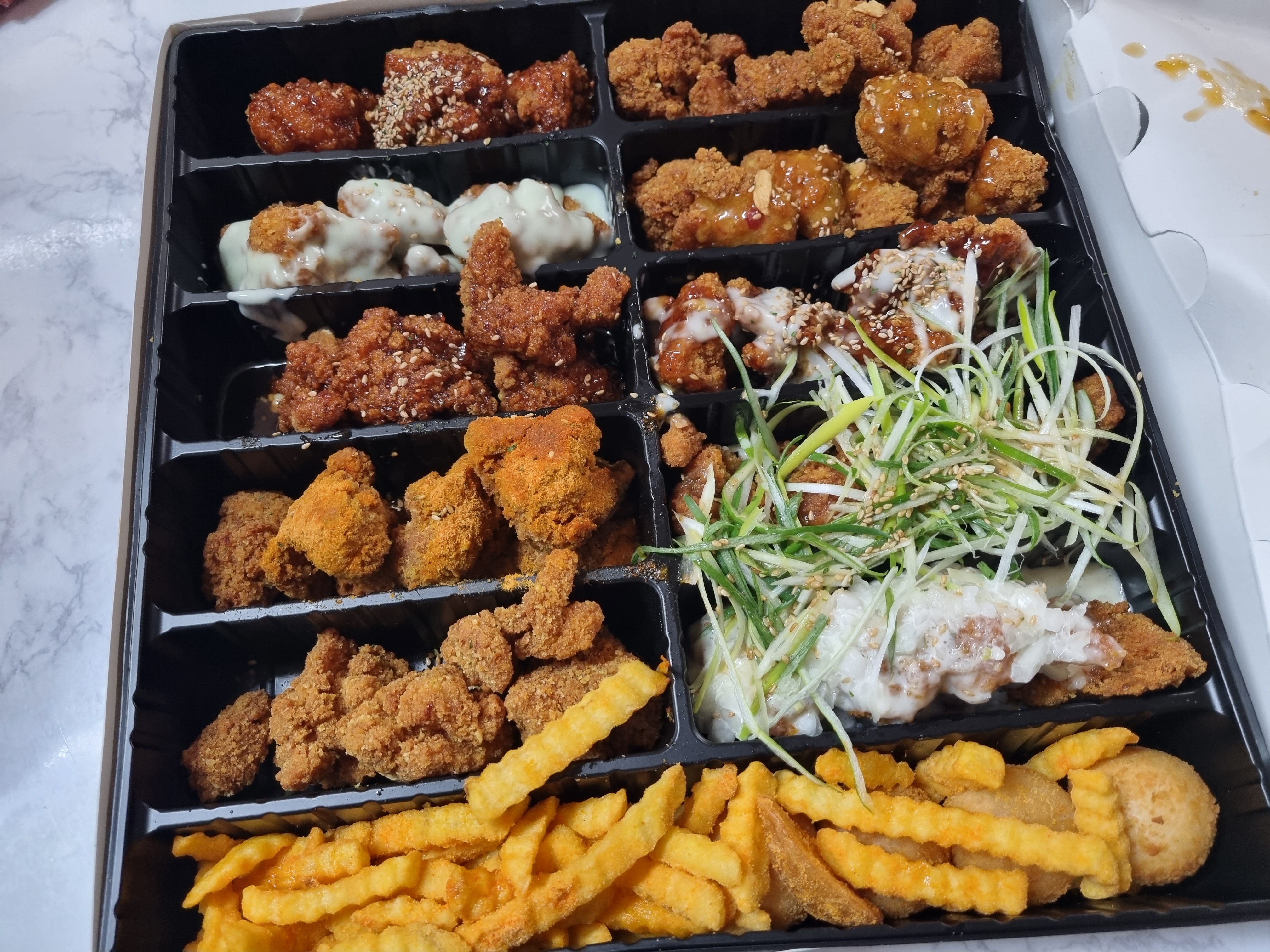 맛의 종류는 매운양념맛, 조금 매운맛, 치즈맛, 파닭, 강정맛, 크림맛등 각자 좋아하는 맛이 다양하게 들어있어 너무 마음에 들었는데 가격이나 주문은 인터넷으로 확인 가능하고 주문도 할 수 있습니다.
