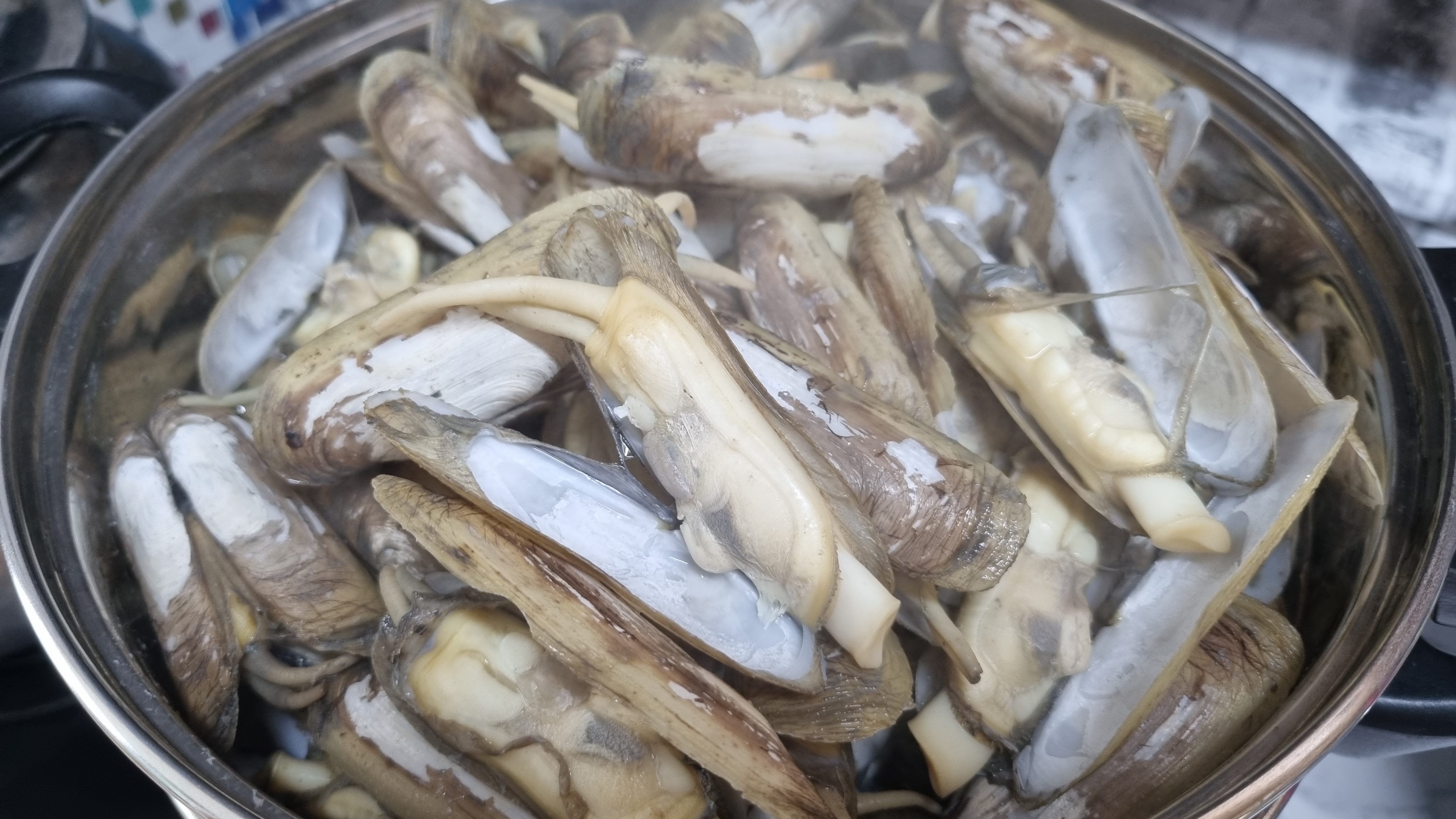 조개의 양에 따라 찌는 시간이 약간씩 다를 수 있지만 10~12분 정도면 대부분 아주 맛있게 쪄져서 드실 수 있습니다.